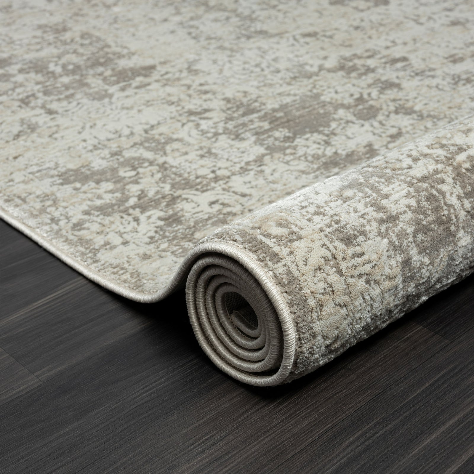 Give your space a subtle surge of contemporary style with this deliciously soft area rug. This piece features a distressed bordered floral pattern in hues of beige, gray, and cream. The polyester blend fibers have a high-low texture that makes the pattern multi-dimensional while maintaining an extra-low pile height. Thick woven on a cotton backing, this rug provides premium luxe softness and durability.