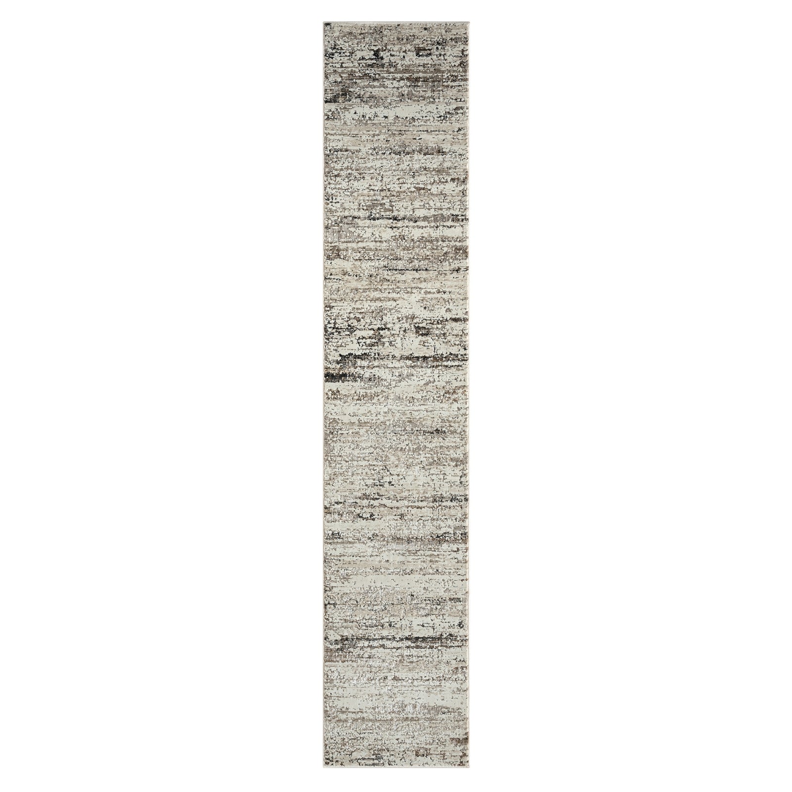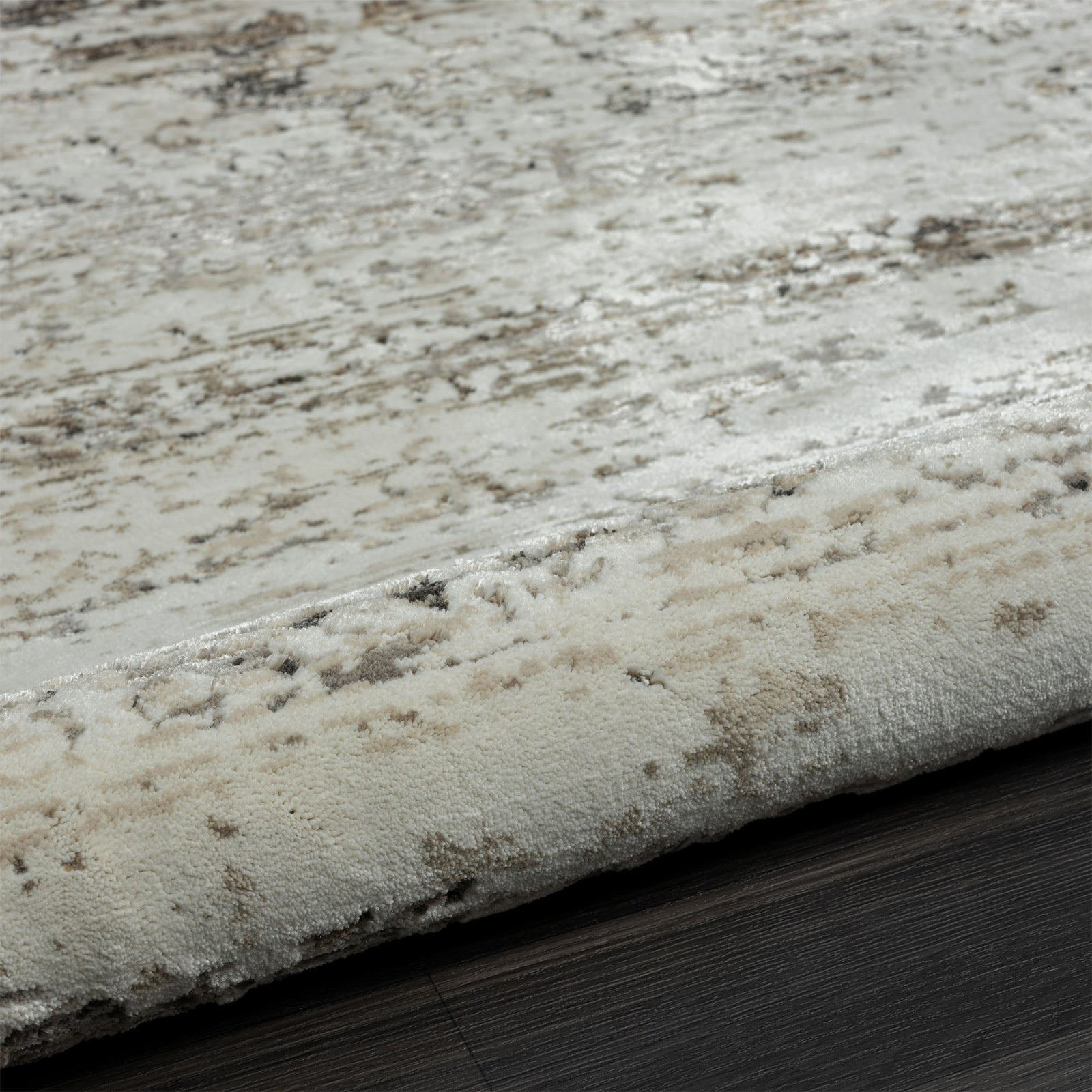 Give your space a subtle surge of contemporary style with this deliciously soft area rug. This piece features a distressed abstract pattern in hues of beige, gray, and cream. The polyester blend fibers have a high-low texture that makes the pattern multi-dimensional while maintaining an extra-low pile height. Thick woven on a cotton backing, this rug provides premium luxe softness and durability.