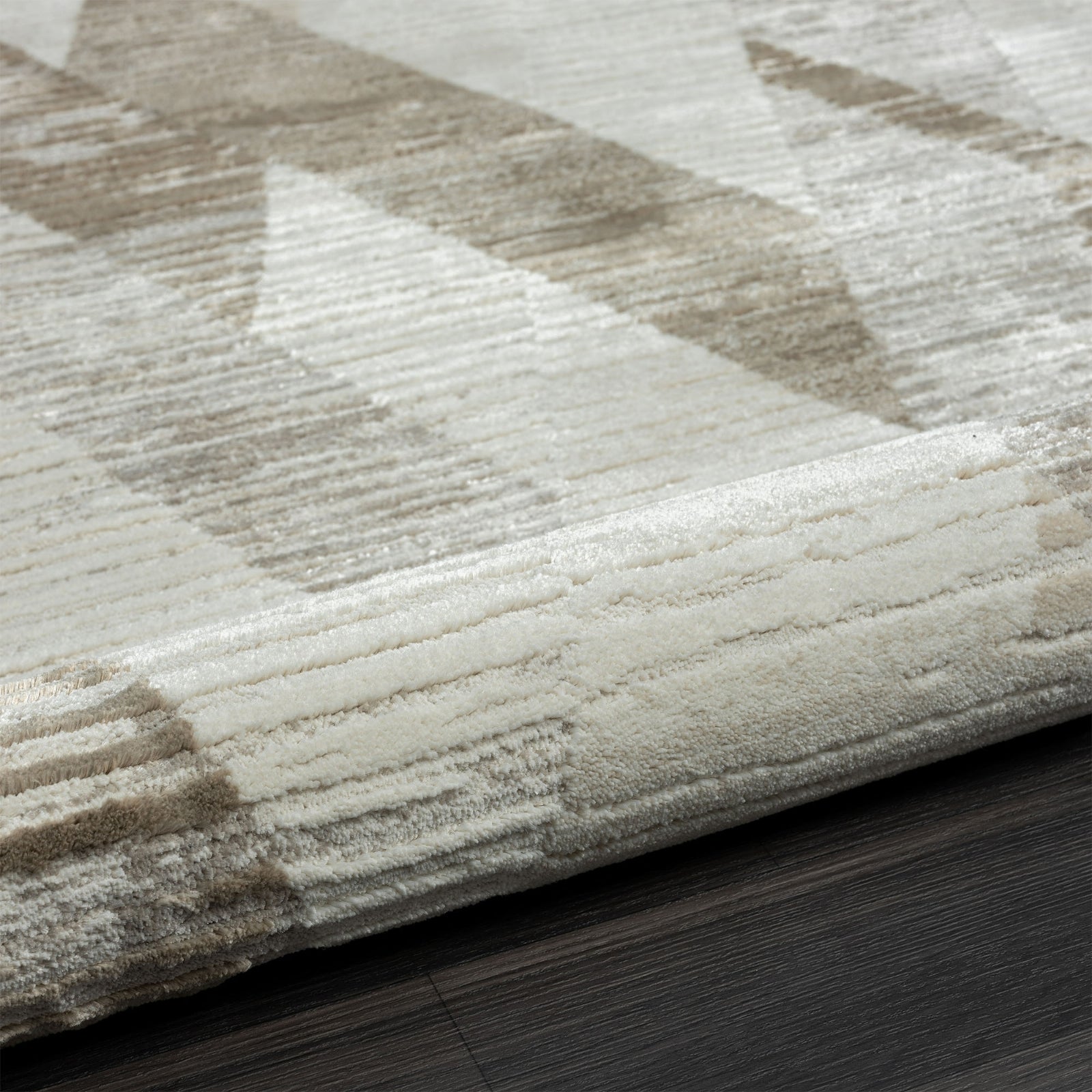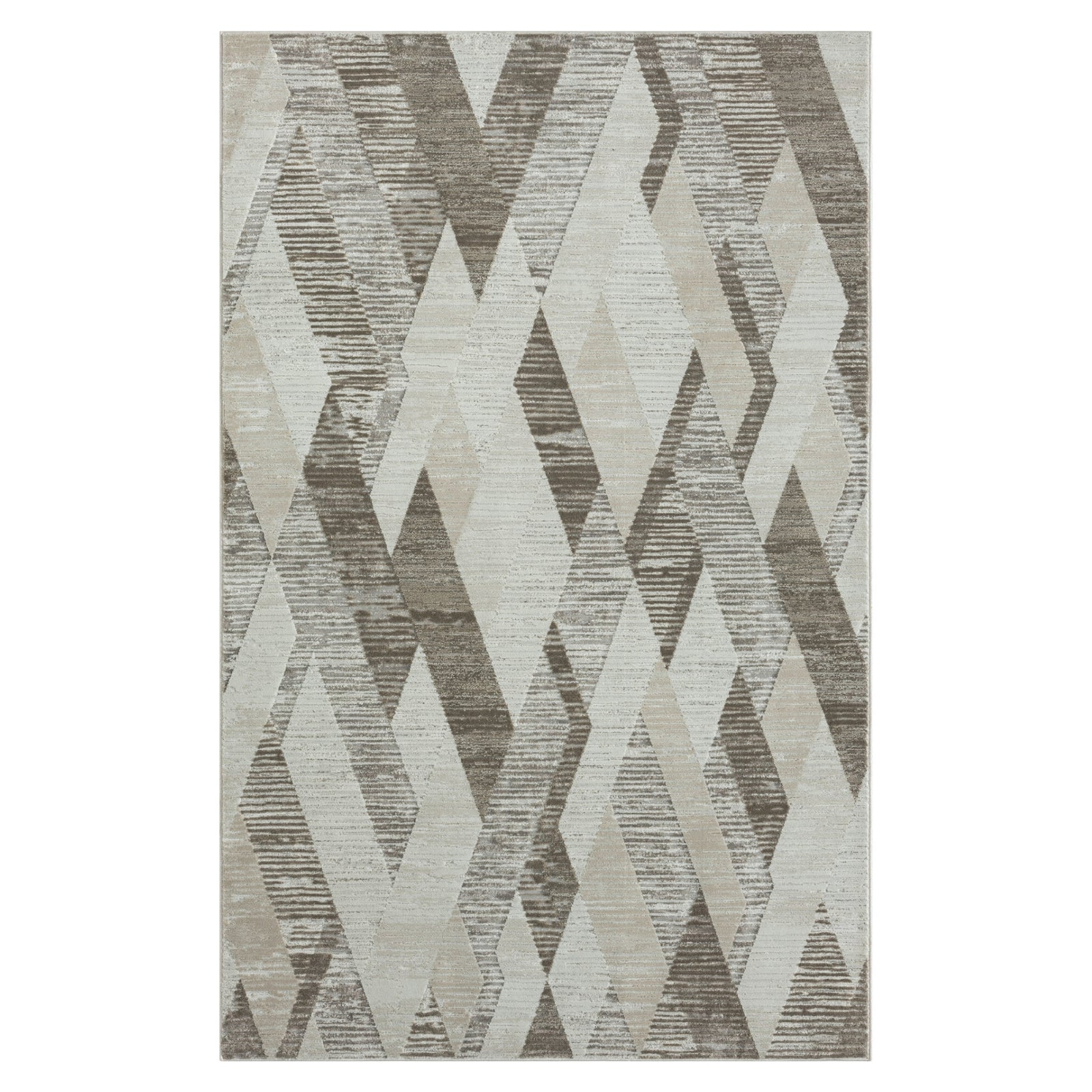 Give your space a subtle surge of contemporary style with this deliciously soft area rug. This piece features a lightyly distressed geometric diamond pattern in hues of beige, gray, and cream. The polyester blend fibers have a high-low texture that makes the pattern multi-dimensional while maintaining an extra-low pile height. Thick woven on a cotton backing, this rug provides premium luxe softness and durability.