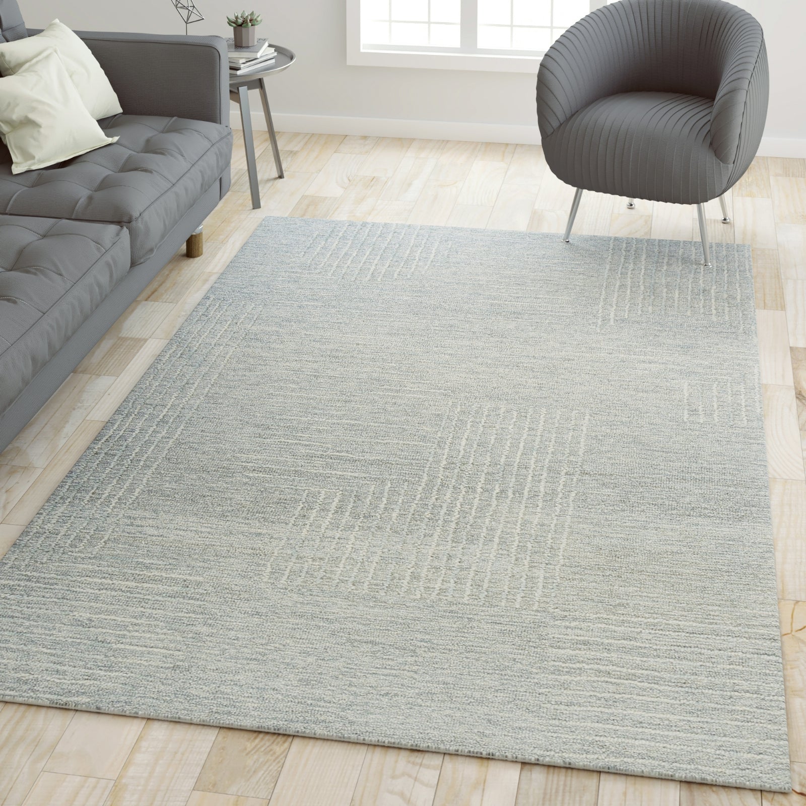 Immerse your space in sophistication with our Light Gray/Ivory Geometric Contemporary Indoor Hand-Tufted Area Rug, a testament to exquisite craftsmanship. Expertly hand-tufted in India, this rug is a blend of tradition and contemporary style. Crafted from 100% wool, it guarantees a luxurious underfoot experience while ensuring long-lasting durability. The chic geometric and abstract design, graced with light gray and ivory tones, effortlessly complements modern, contemporary, transitional, and casual interiors. Revel in the fusion of comfort and aesthetics as you step onto this plush indoor rug. Embrace the artistry of Indian craftsmanship and the timeless appeal of pure wool with this elegant addition to your decor. Elevate your living space with the Light Gray/Ivory Geometric Contemporary Hand-Tufted Area Rug, where every detail reflects your refined taste.