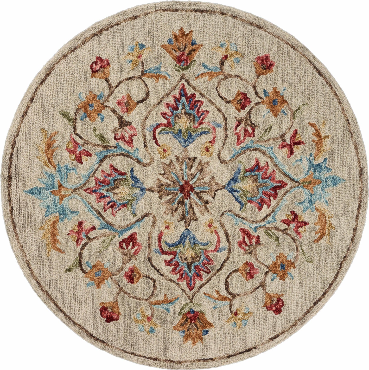The medallion centered flowers in this piece are one of a kind. The beige toned background allows for an easy combination to a variety of different styles. Handmade in India, this piece has undergone delicate craftsmanship to bring a high quality piece into your home. The bordering edge allows for an easy transition from detailed rug to carpet or hardwood. No matter where you decide to place this piece it is sure to bring great style and happiness for many years to come.