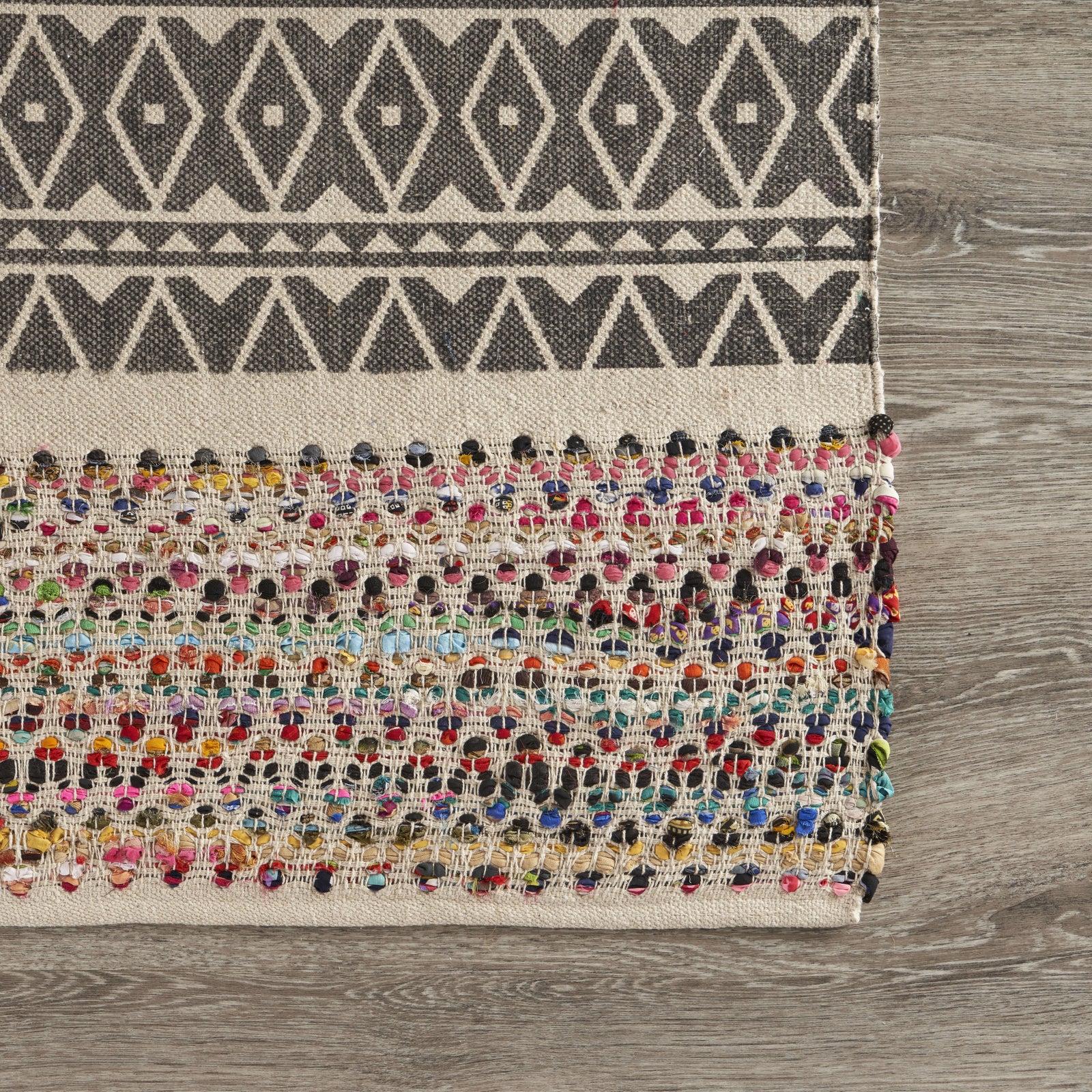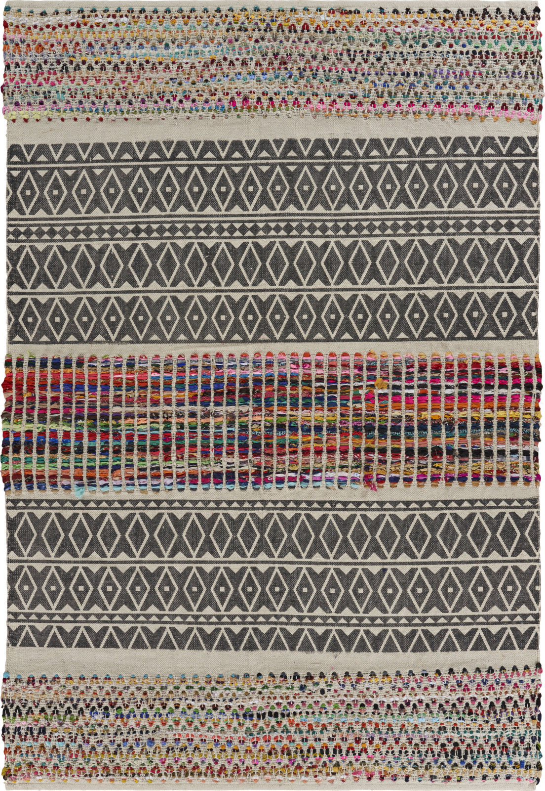 This particular piece highlights the traditional style while also featuring a wonderfully designed geometric blocking. This allows the rug to be easily added to your style! With a geometric take on the traditional Chindi style, LR Home brings you the Vogue Collection. This collection features wonderfully bright, globally inspired pieces that features a handmade, flat-woven detailed construction and well-toned materials. With two sizes, this collection can fit a variety of different spaces whether it be a dining area, living room, foyer, or even office space.