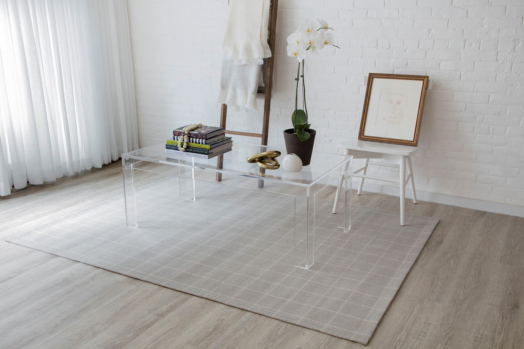Suited for floors in traditional and modern spaces, this decorative area rug assortment is an interior design staple for well-dressed decor. Tailored textile patterns take on new forms with toned down tartan plaid and windowpane check in sophisticated shades of blue, gray and ivory. Hand woven from 100% natural wool fibers, the collection uses classical prints and an elegant color palette to create an enduring floorcovering with timeless appeal. This rug has a Canvas and Latex backing.