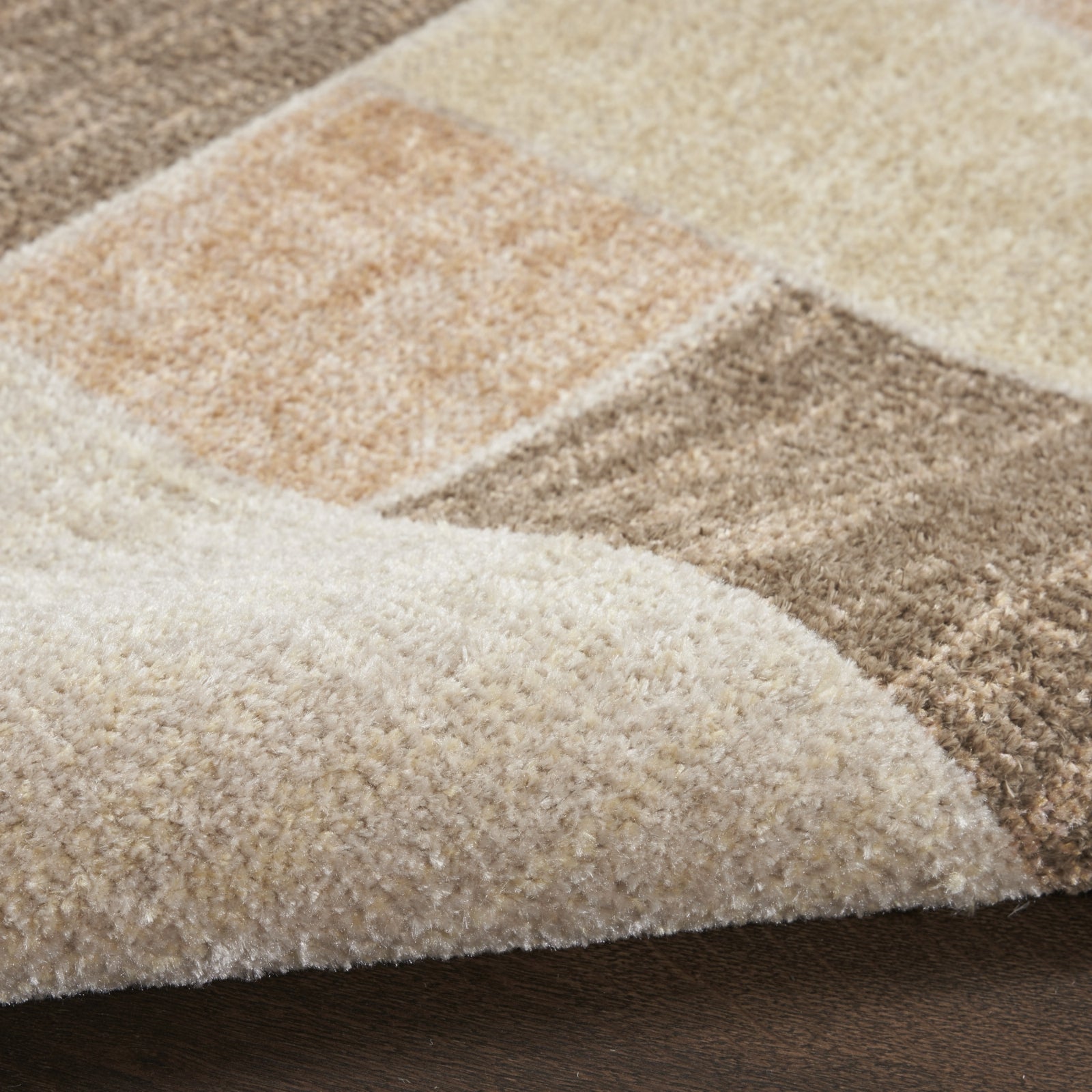 Make a bold statement with this contemporary beige rug from the Astra Machine Washable Collection. The softly textured surface features a muted color block pattern with a shimmery finish that shifts in tone under different light. Made from easy-clean yarns: simply place into your washing machine and air dry!