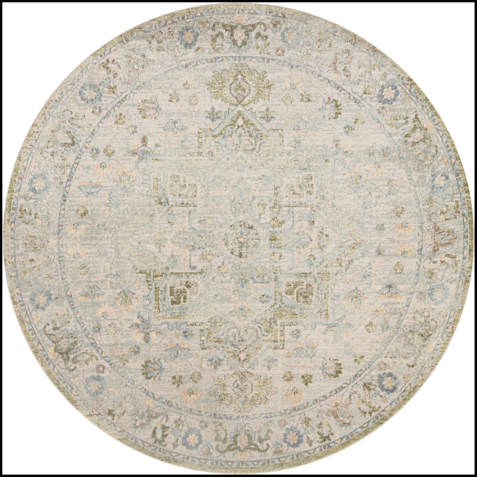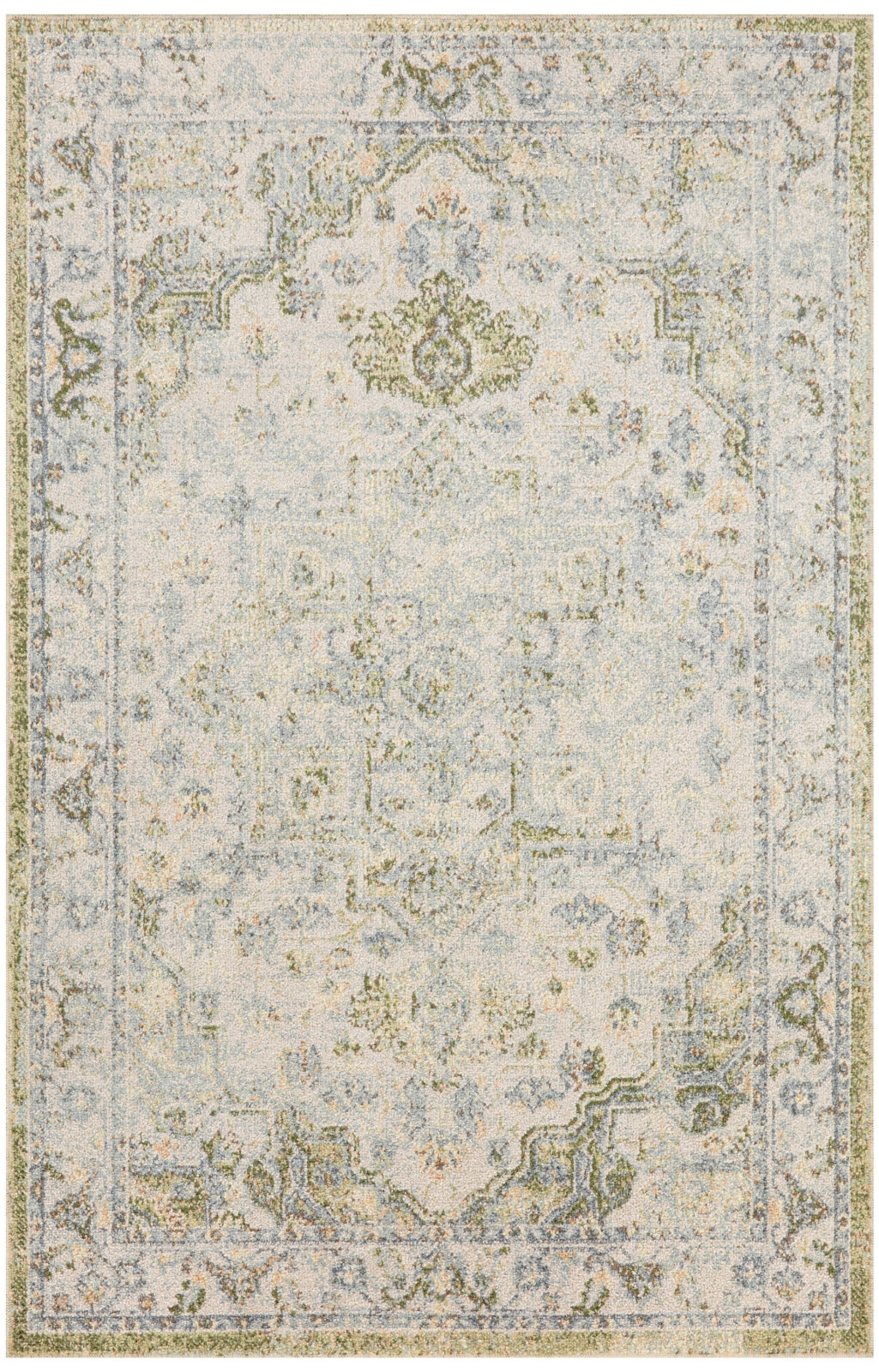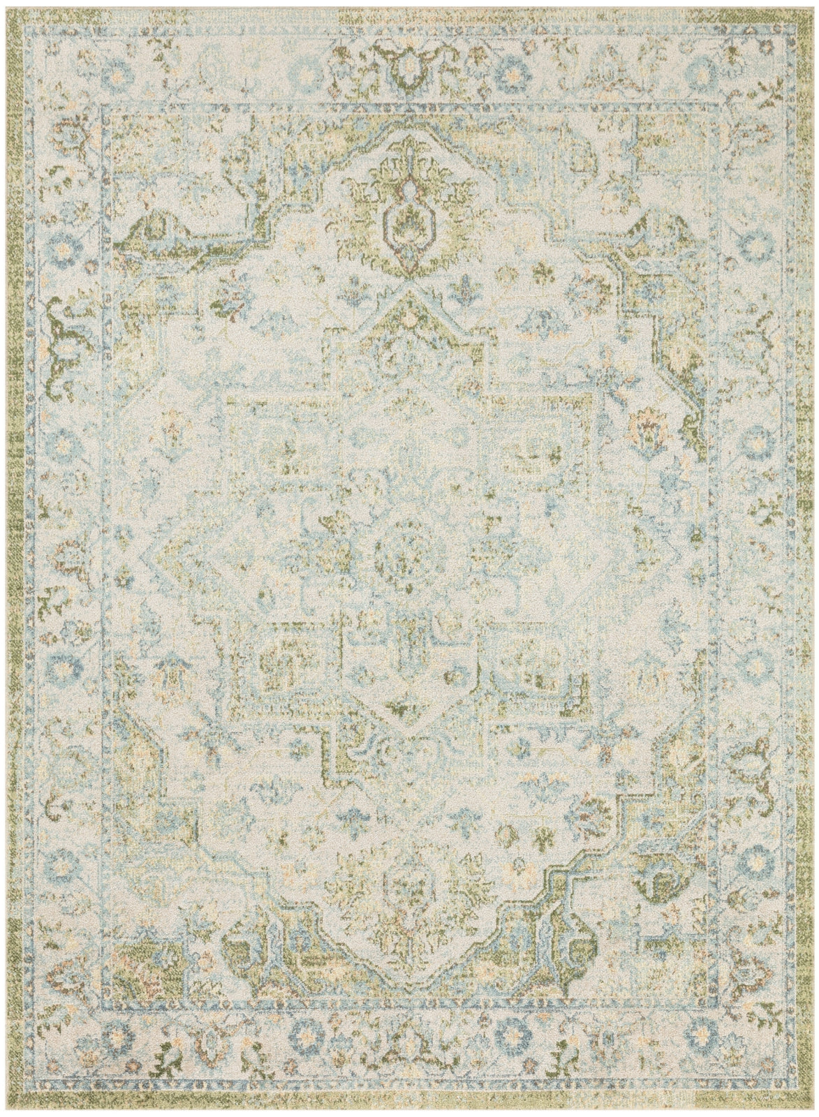 Invite a touch of old-world charm into your favorite space with this Persian rug from the Astra Machine Washable Collection. The heirloom-inspired design features an artfully faded green and blue floral medallion pattern and matching border that beautifully defines farmhouse, boho, and vintage decor. This rug is designed for modern living with a low-profile, machine-washable pile and shimmering yarns that beautifully reflect shifting light.