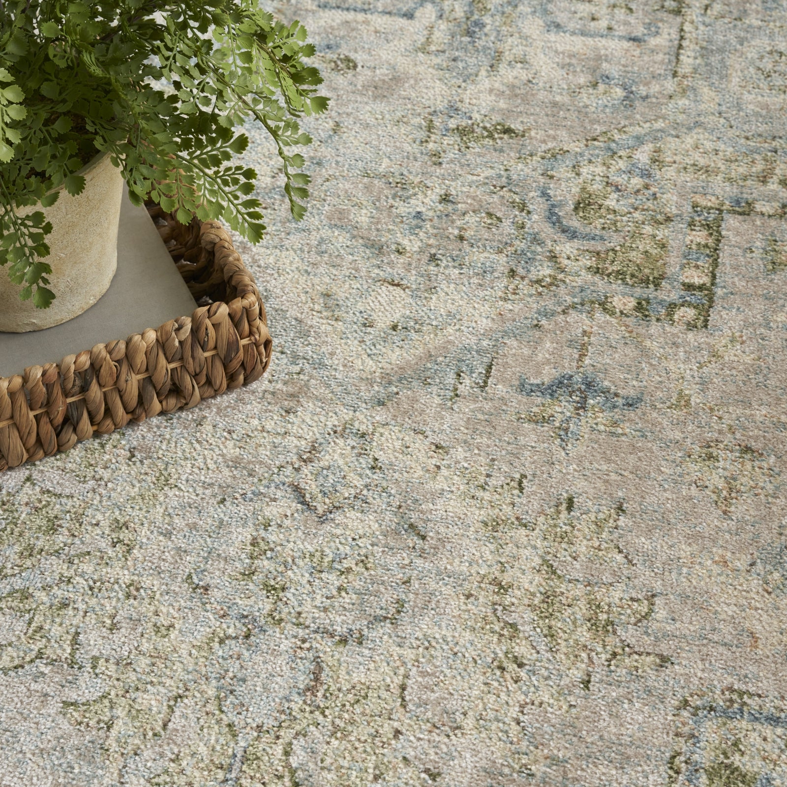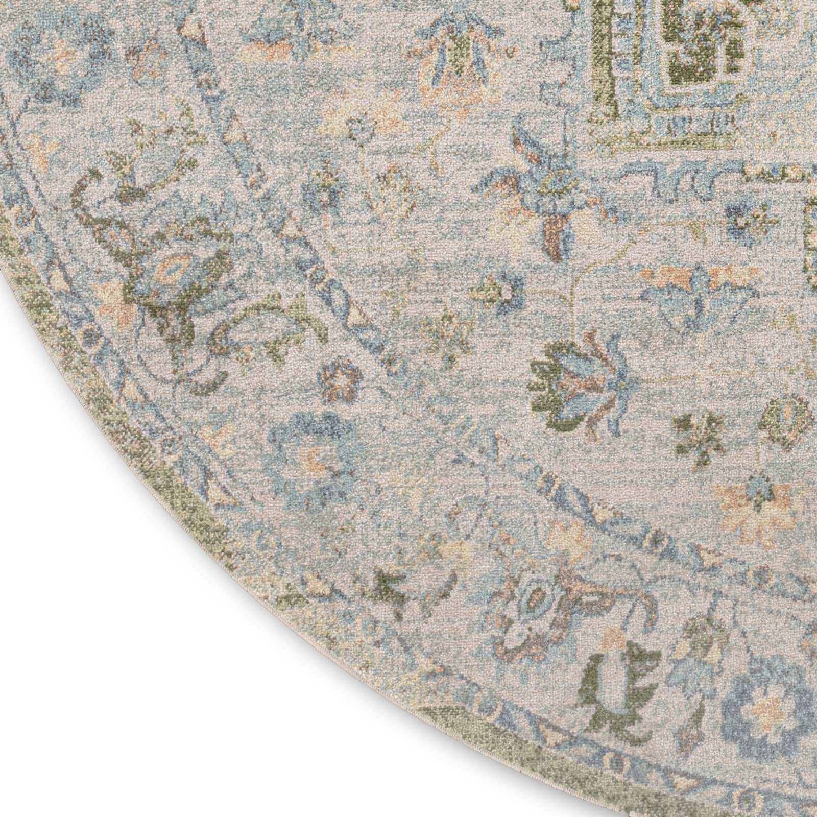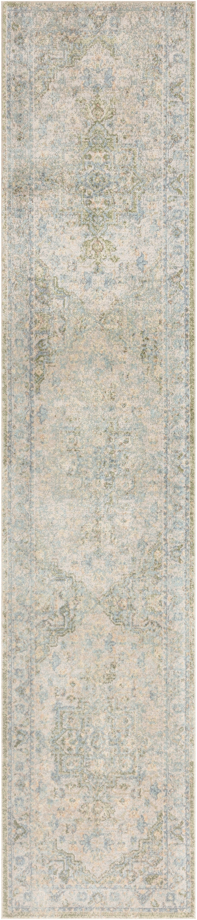 Invite a touch of old-world charm into your favorite space with this Persian rug from the Astra Machine Washable Collection. The heirloom-inspired design features an artfully faded green and blue floral medallion pattern and matching border that beautifully defines farmhouse, boho, and vintage decor. This rug is designed for modern living with a low-profile, machine-washable pile and shimmering yarns that beautifully reflect shifting light.