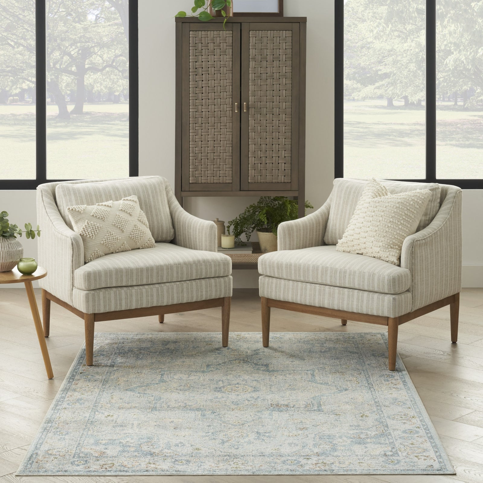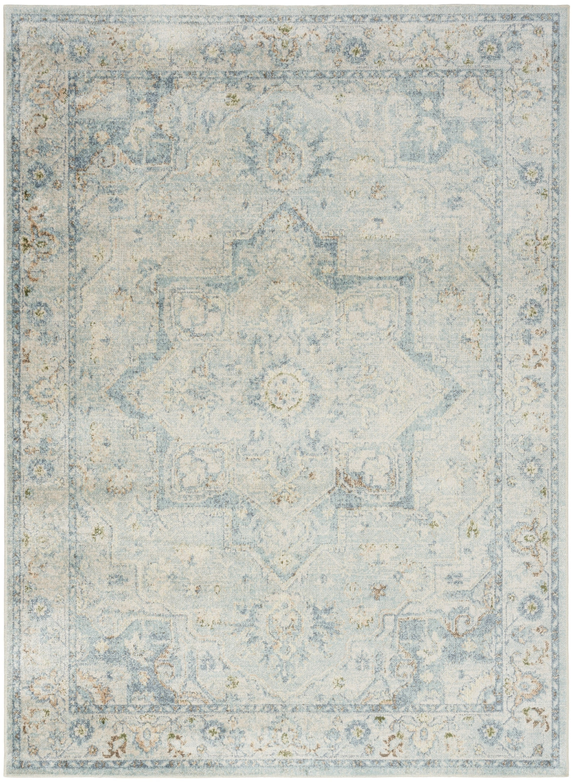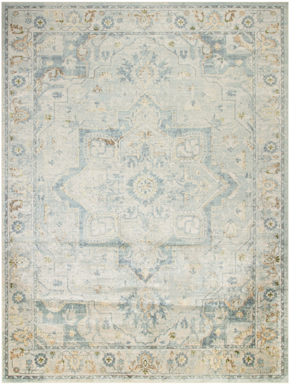Invite a touch of old-world charm into your favorite space with this light blue Persian rug from the Astra Machine Washable Collection. The heirloom-inspired design features an ornate beige floral medallion pattern and matching border that beautifully defines farmhouse, boho, and vintage decor. This rug is designed for modern living with a low-profile, machine-washable pile and shimmering yarns that beautifully reflect shifting light.