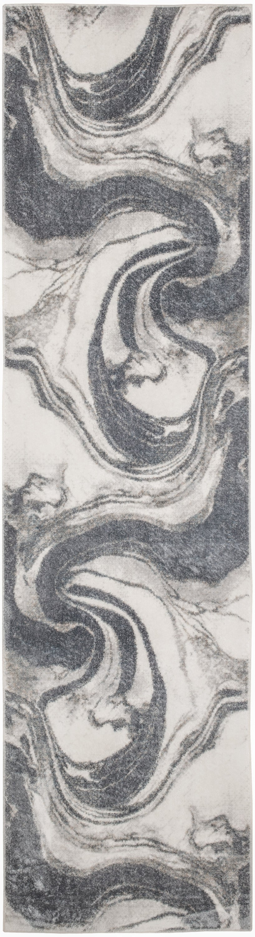 Equal parts practical and sophisticated, this grey abstract Astra Machine Washable rug brings luxurious style to your home without breaking the bank. The elegant swirling pattern creates movement and fluidity, while the soft color palette makes it easy to decorate a variety of spaces. This modern rug is made from polyester, finished with an eye-catching, silky sheen. Available in a variety of sizes to suit any room, including runner rugs for the kitchen and bathroom or 8x10 rugs for the living room.