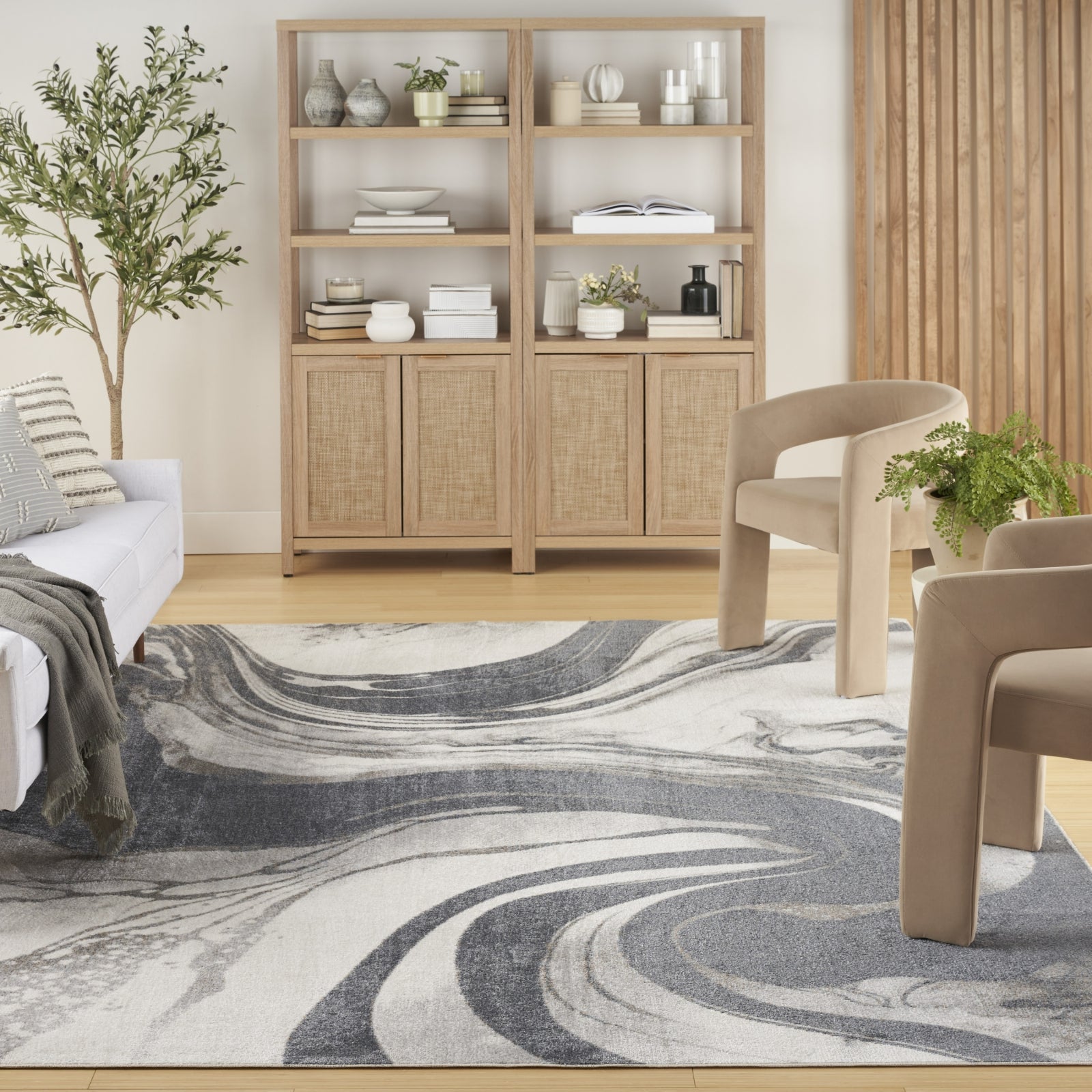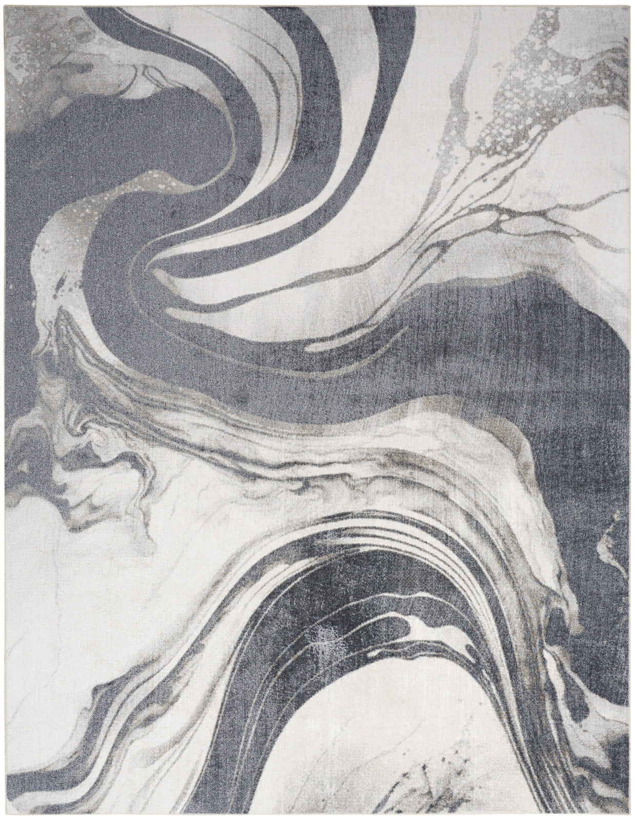- Equal parts practical and sophisticated, this grey abstract Astra Machine Washable rug brings luxurious style to your home without breaking the bank. The elegant swirling pattern creates movement and fluidity, while the soft color palette makes it easy to decorate a variety of spaces. This modern rug is made from polyester, finished with an eye-catching, silky sheen. Available in a variety of sizes to suit any room, including runner rugs for the kitchen and bathroom or 8x10 rugs for the living room.