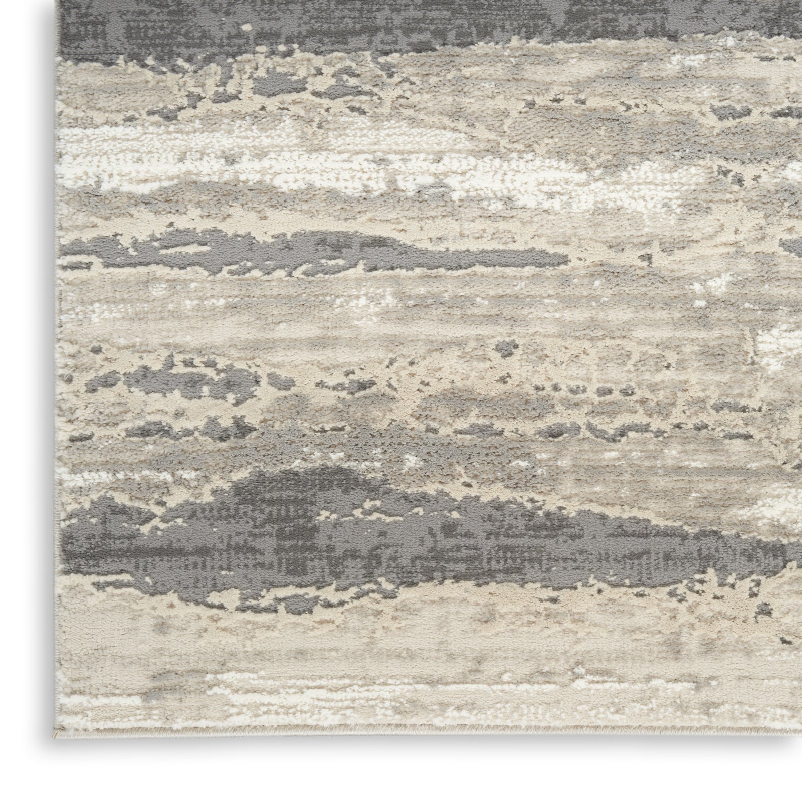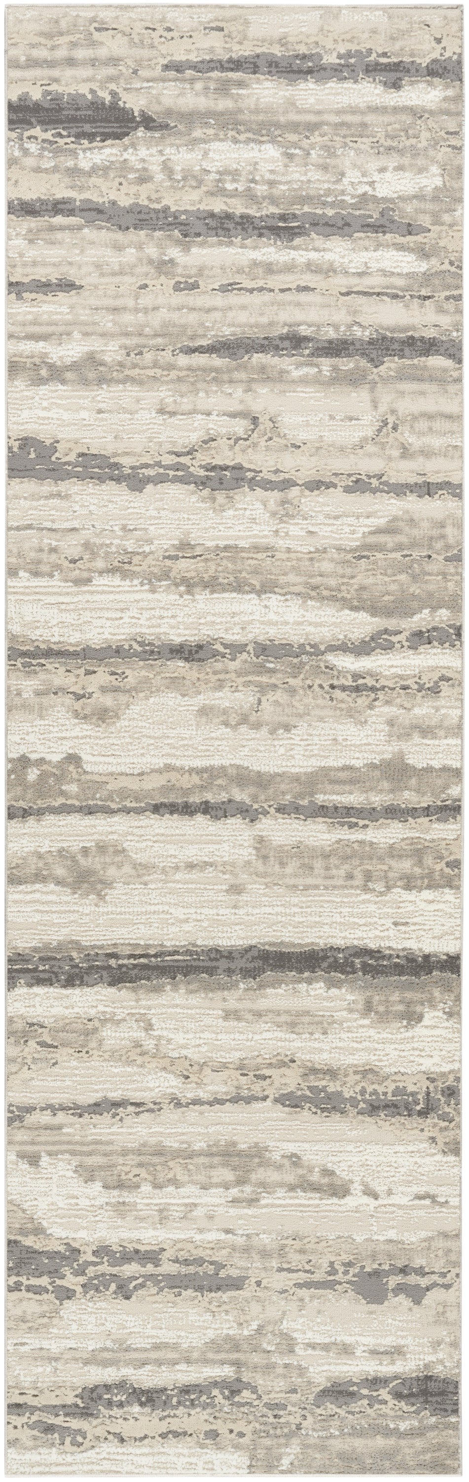 - Invite movement and depth to your space with this abstract rug from the Eco-Friendly Collection. The irregular stripe pattern is presented in beige, ivory, and grey tones that are delicately layered to create a sense of dimension. Crafted from recycled polyester fibers for a stylish and sustainable way to decorate your living room, hallway, bedroom, or kitchen.