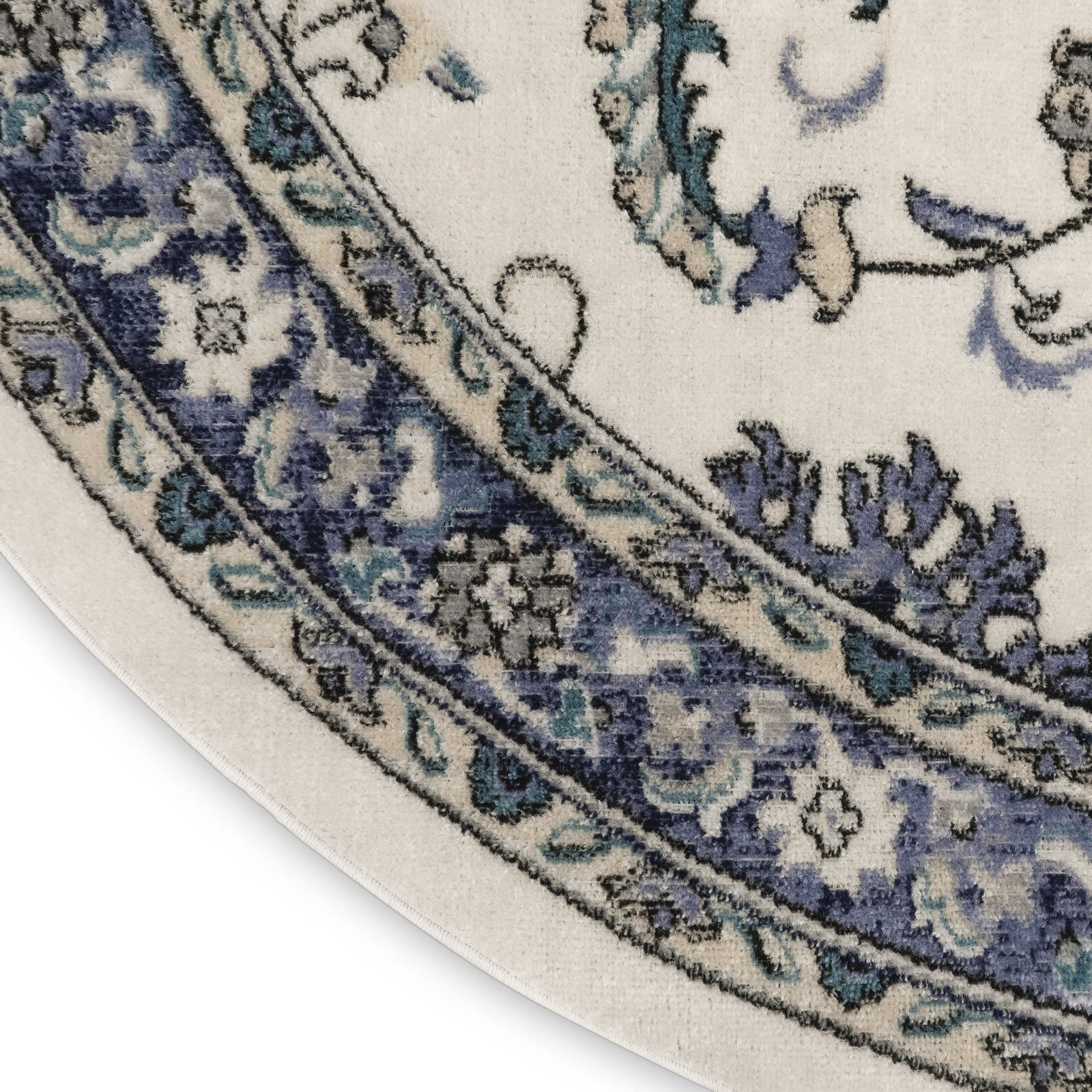 - Whether you're looking to bring a more welcoming vibe to your outdoor conversation spaces or need a stylish yet fuss-free way to refresh your indoor decor, this Persian-inspired rug from the Nourison Essentials collection has you covered. This versatile outdoor rug showcases a traditional floral pattern and matching border in bold blue and grey tones sure to wow family and friends alike. You can even layer it on top of your favorite solid-colored or natural fiber rug. Made from 100% polypropylene for easy cleaning: just hose rinse and air dry. OEKO-TEX certified.