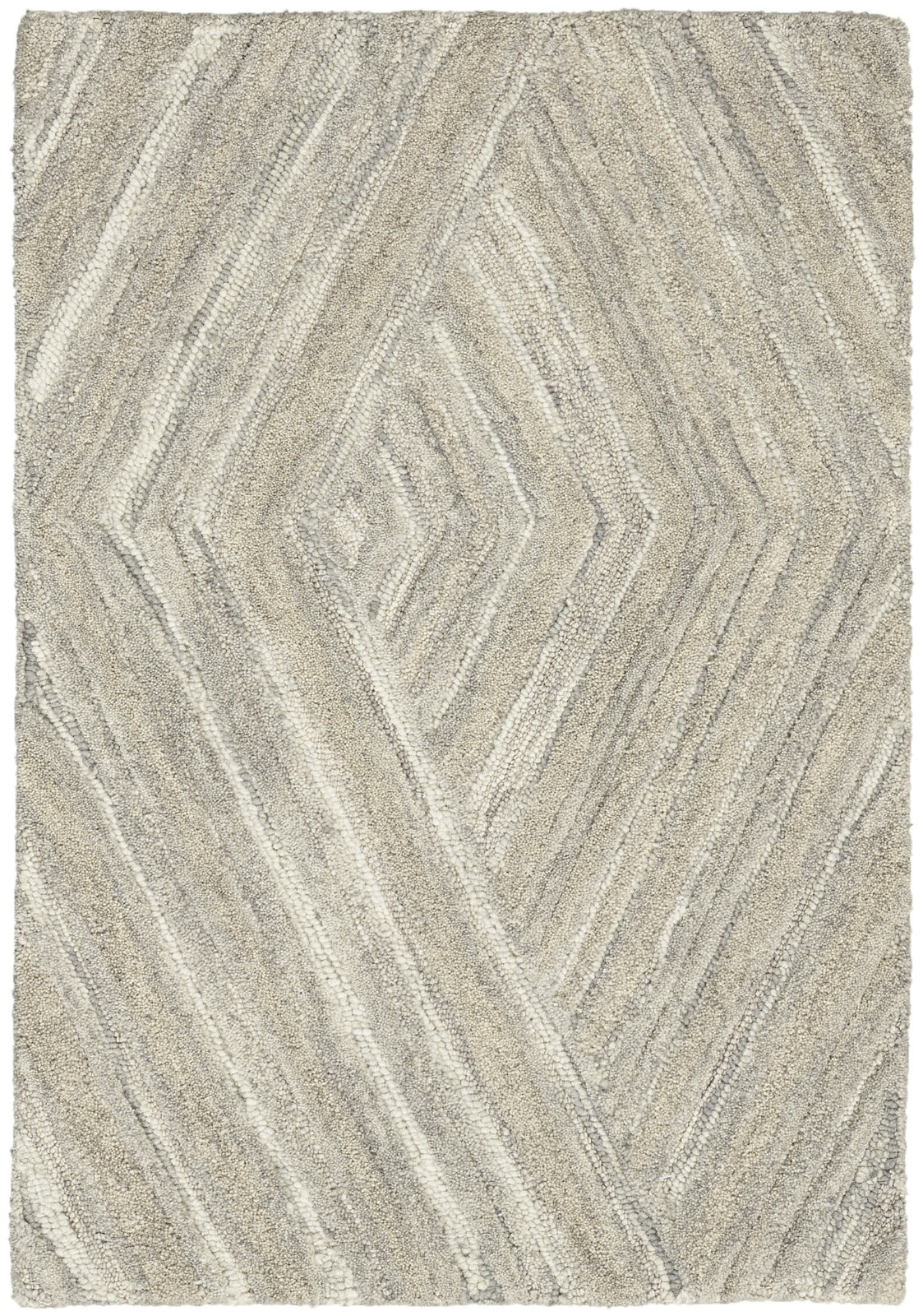 • Infuse sophisticated flair into your home with this grey geometric rug from the Graceful Collection. The handmade design creates the illusion of two patterns in one, punctuated by a cut-and-loop pile that adds depth and textural appeal. Hand tufted of wool for lasting style and comfort.