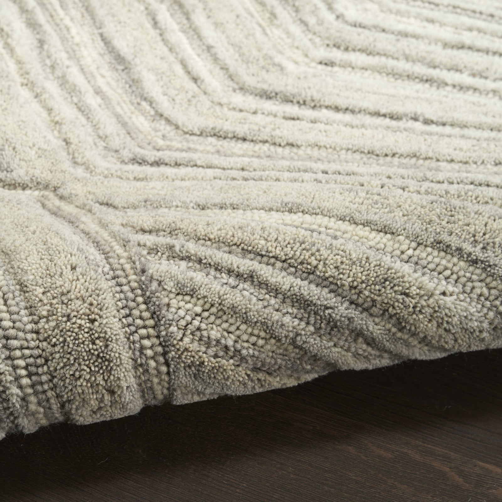 Infuse sophisticated flair into your home with this grey geometric rug from the Graceful Collection. The handmade design creates the illusion of two patterns in one, punctuated by a cut-and-loop pile that adds depth and textural appeal. Hand tufted of wool for lasting style and comfort.