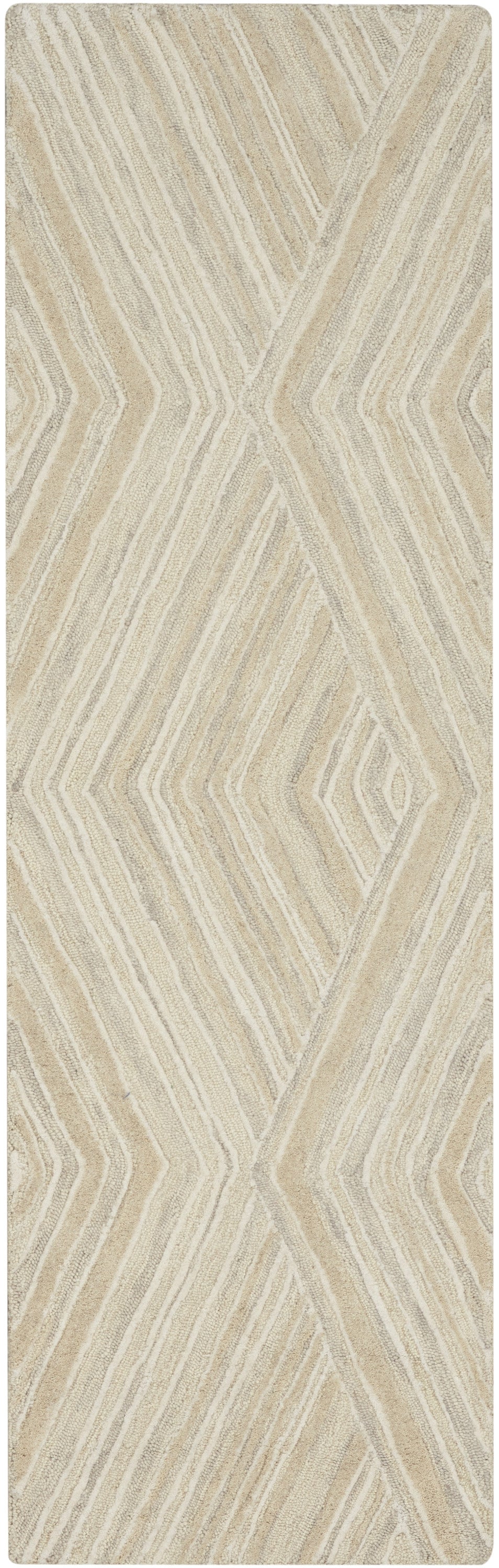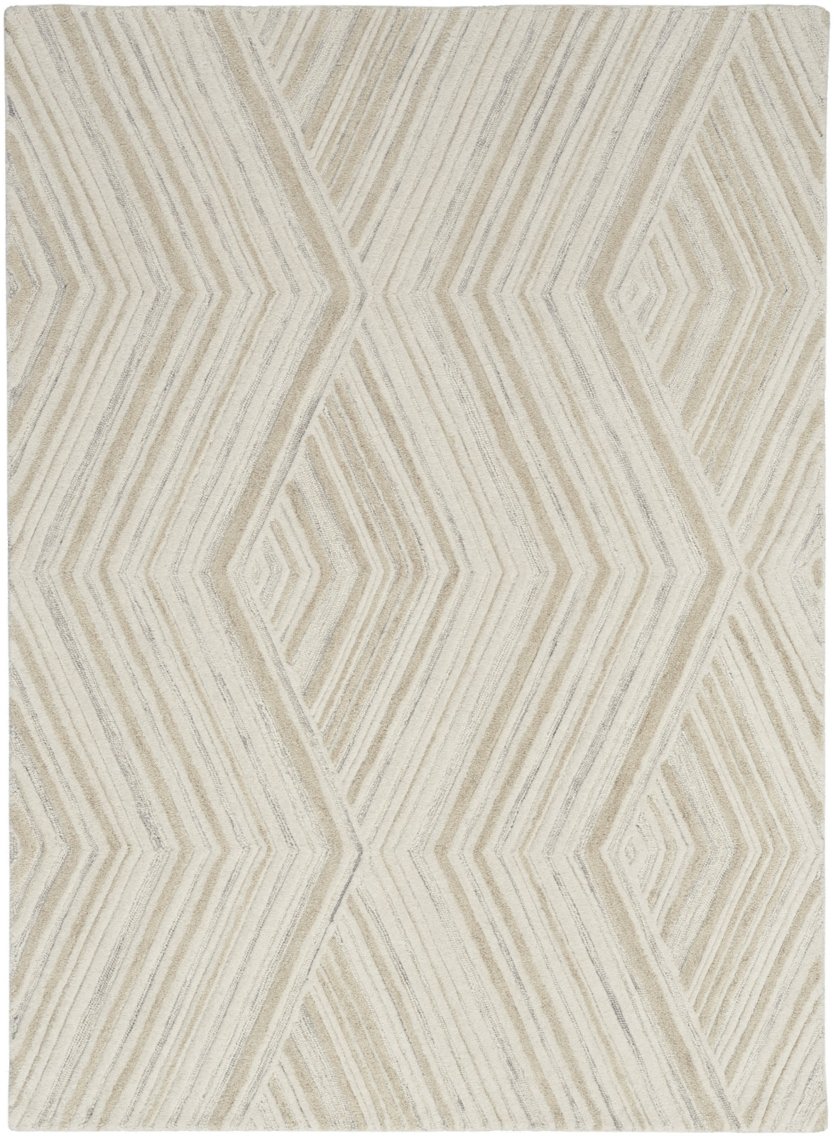 Infuse sophisticated flair into your home with this ivory geometric rug from the Graceful Collection. The handmade design creates the illusion of two patterns in one, punctuated by a cut-and-loop pile that adds depth and textural appeal. Hand tufted of wool for lasting style and comfort.