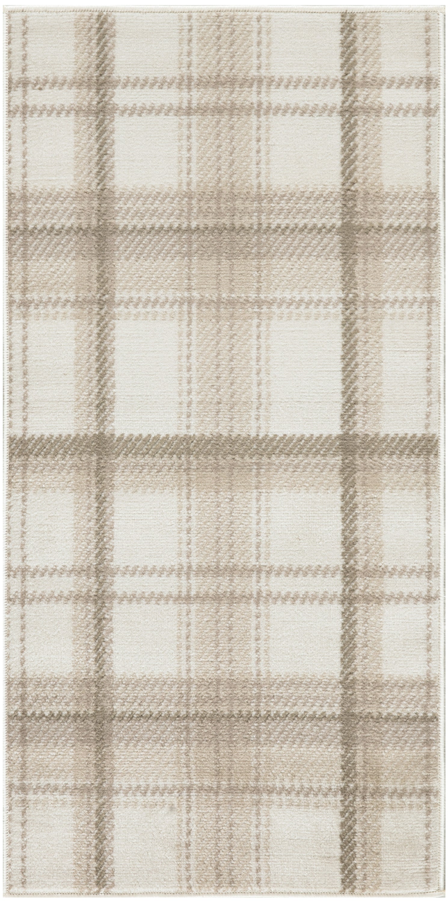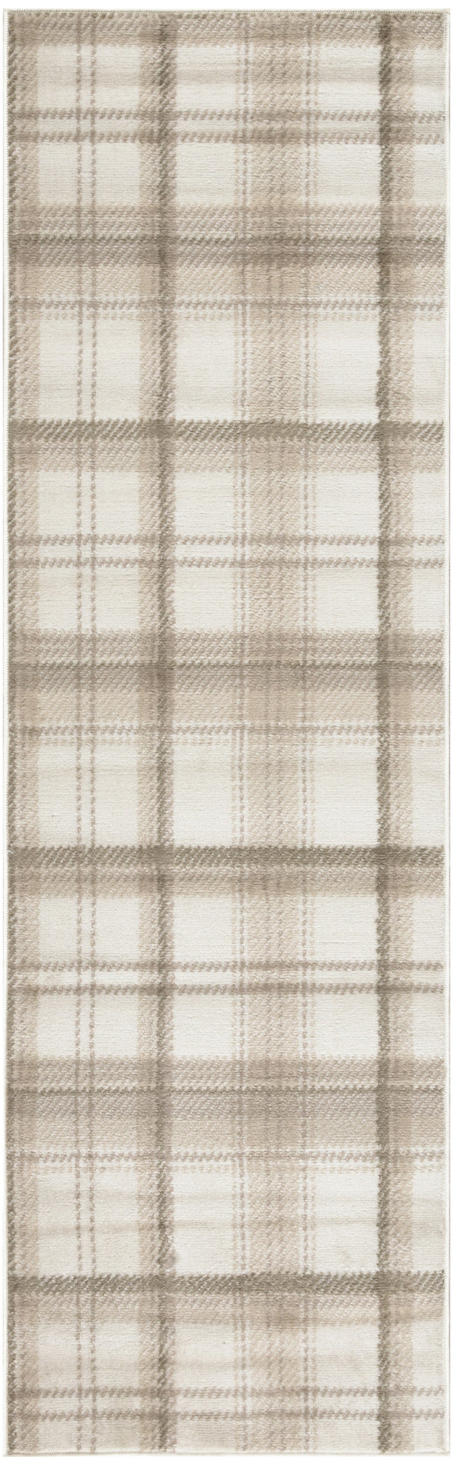 - Cozy and casual, this ivory and beige plaid rug from the Grafix Collection adds a layer of relaxed style to your home. The classic linear pattern is equally at home in rustic, farmhouse, and contemporary spaces. Machine-made from durable polypropylene yarns for lasting style and stress-free maintenance - ideal for placement in your living room, bedroom, office, entryway, or kitchen.