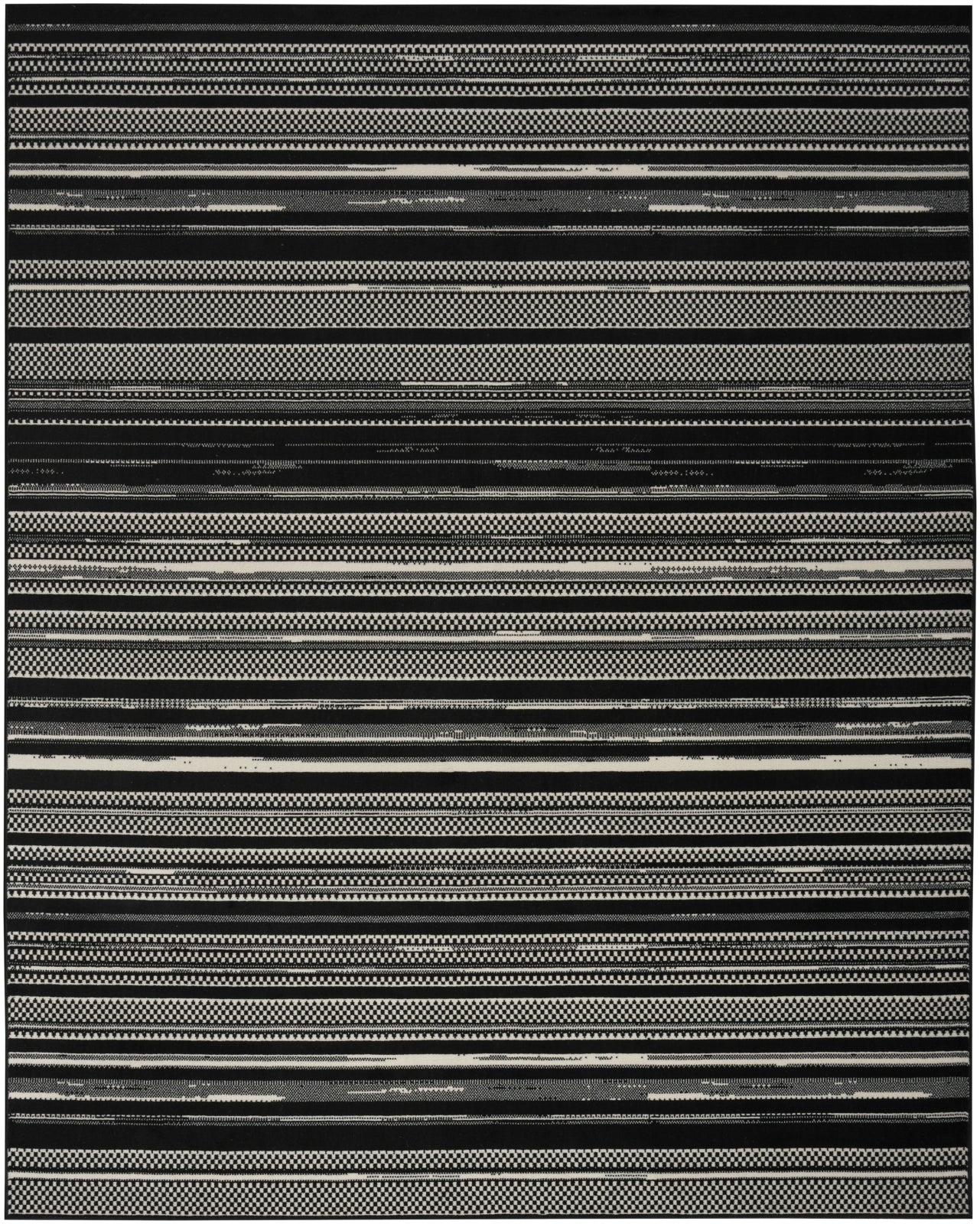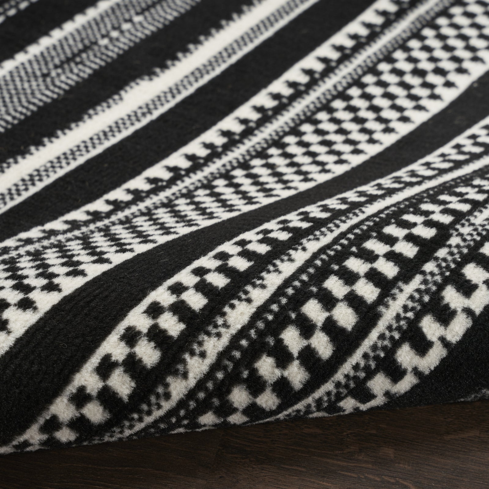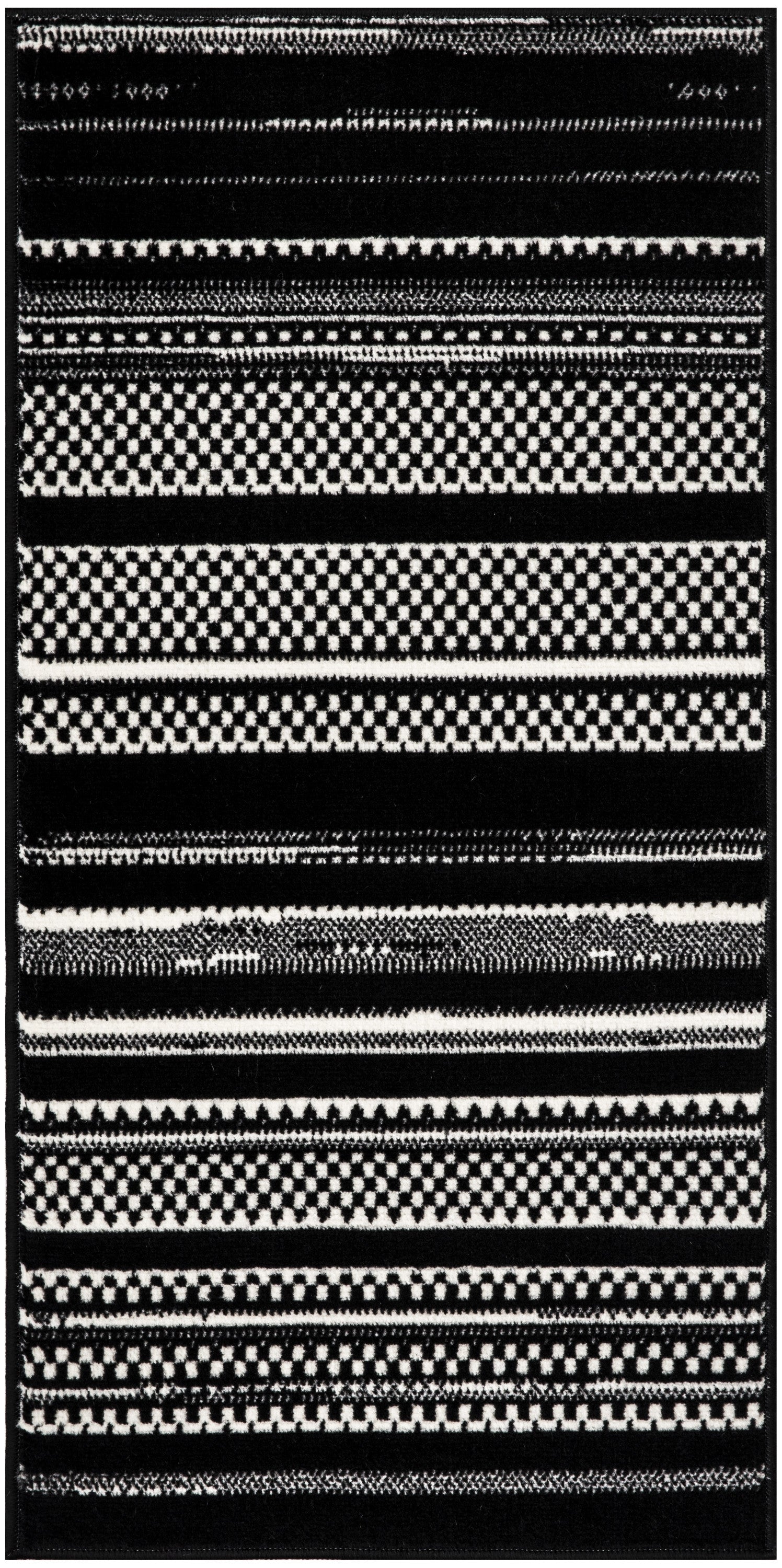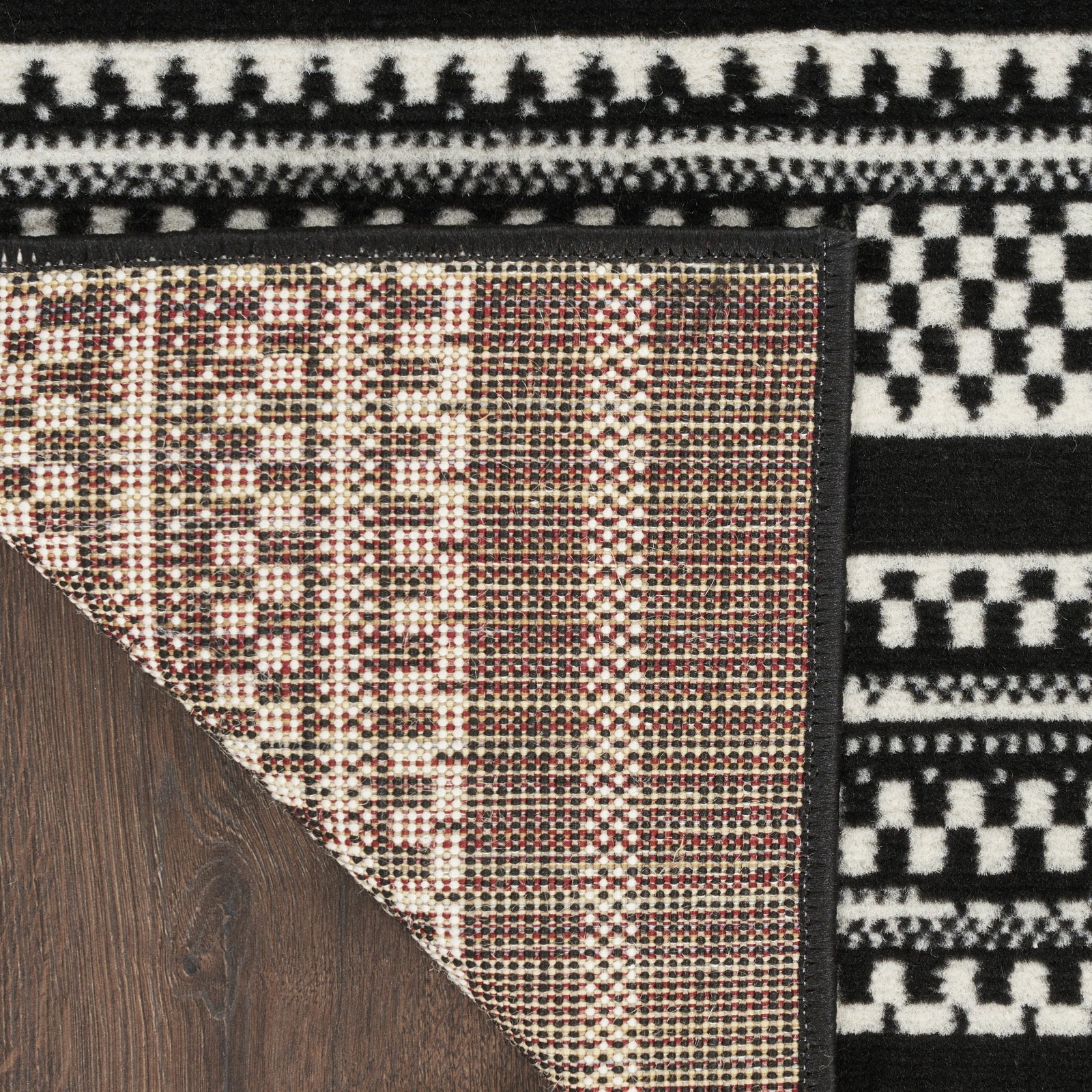 - For the modern maximalist, this black and white abstract striped rug from the Grafix Collection adds bold pattern to your space. The combination of solid stripes, checkered blocks, and lightly distressed lines creates visual interest when added to your kitchen, entryway, bedroom, or living room decor. Machine-made from durable polypropylene yarns that are easy to maintain - great for busy households with pets, young kids, and frequent guests.