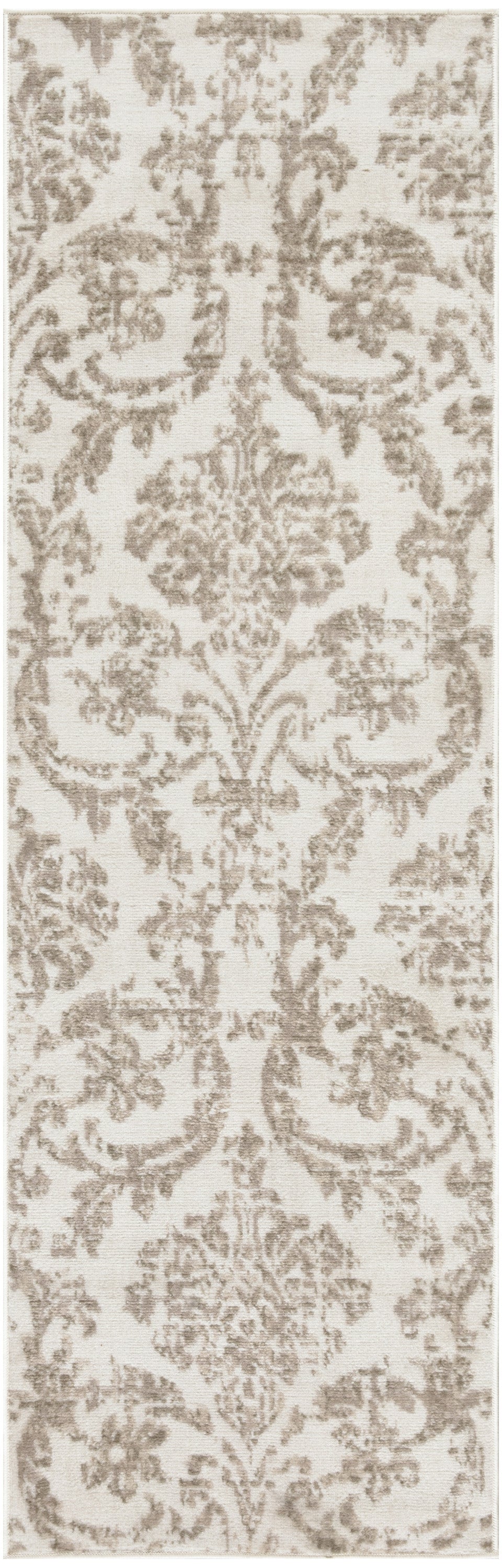 Bring a storied look to your home with this ivory and beige damask rug from the Jubilant Collection. The classic scrolling pattern channels a vintage feel through a tastefully distressed finish, inviting a sense of old-world elegance. Made from durable polypropylene for easy cleaning and lasting style, with a sleek low pile great for the most regularly trafficked areas of your home.
