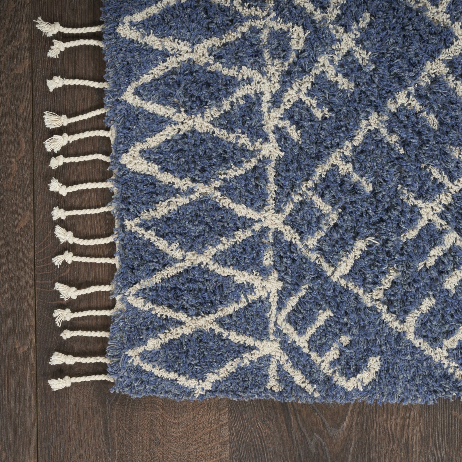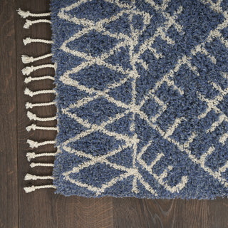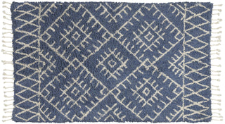 - Soft and inviting in 100% cotton, this navy-blue accent rug from the Native Art Collection brings boho-chic style to your space. Showcasing a tribal geometric design in neutral colors finished with fringe edges, this handmade rug is right at home in modern and farmhouse settings. Place in your entryway, kitchen, or hallway for an instant touch of character.