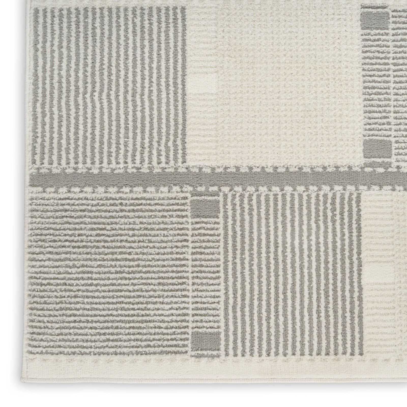 Create a calming atmosphere in your home with this ivory and grey geometric rug from the Nordic collection. The repeating pattern, enhanced by a subtle shimmer and high-low pile that adds depth and dimension. Made in soothing neutral tones, this Scandinavian-inspired rug seamlessly complements a variety of decor styles.
