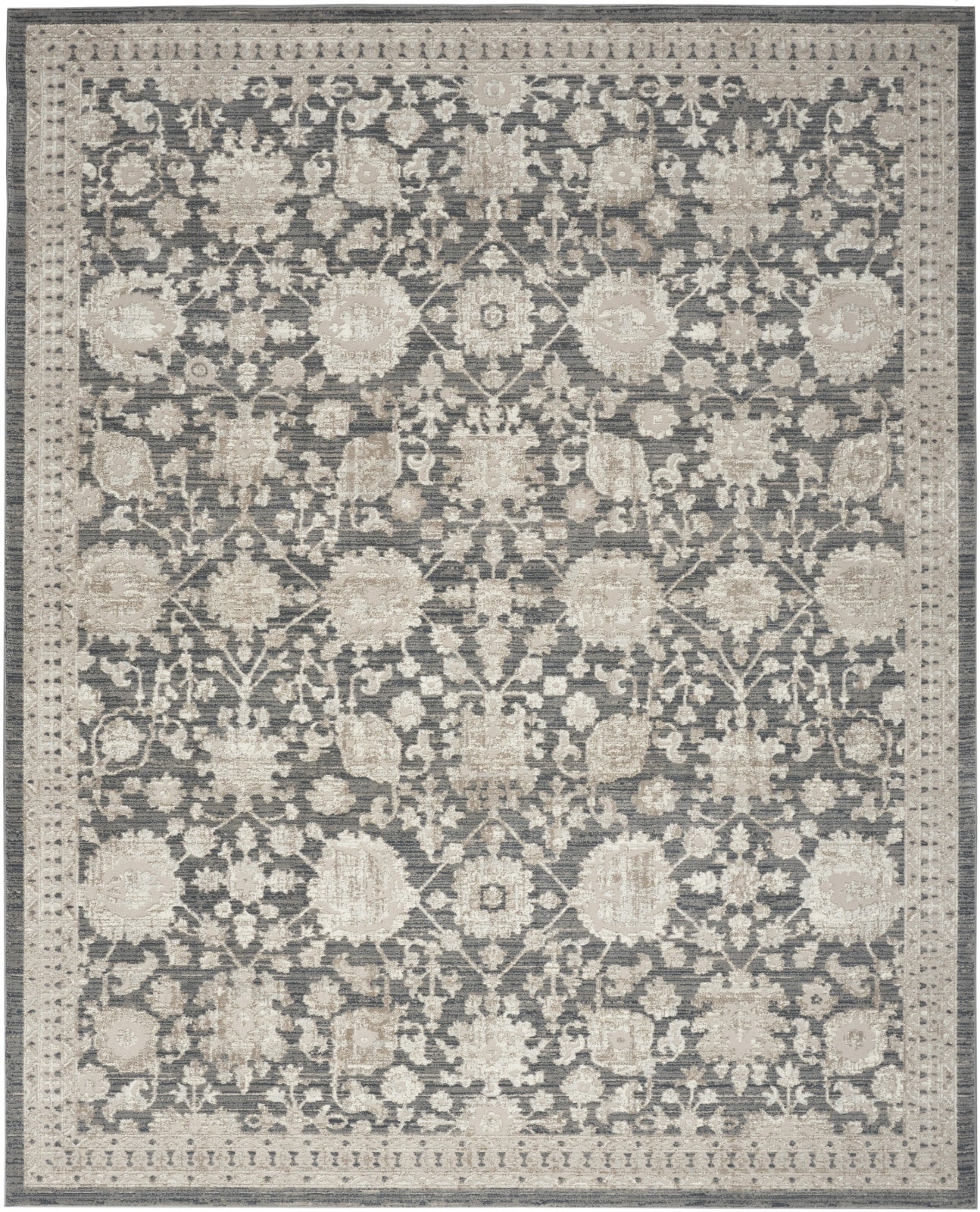 - Transform your space with the timeless look of this charcoal grey Persian-inspired rug from the Renewed Collection. The intricate floral pattern and detailed border pays homage to classic rug crafting, while the recycled polyester construction brings environmental consciousness to the forefront. Choose from a variety of sizes - from runner rugs for the kitchen to large 8x10 rugs for the living room - to complement your space.