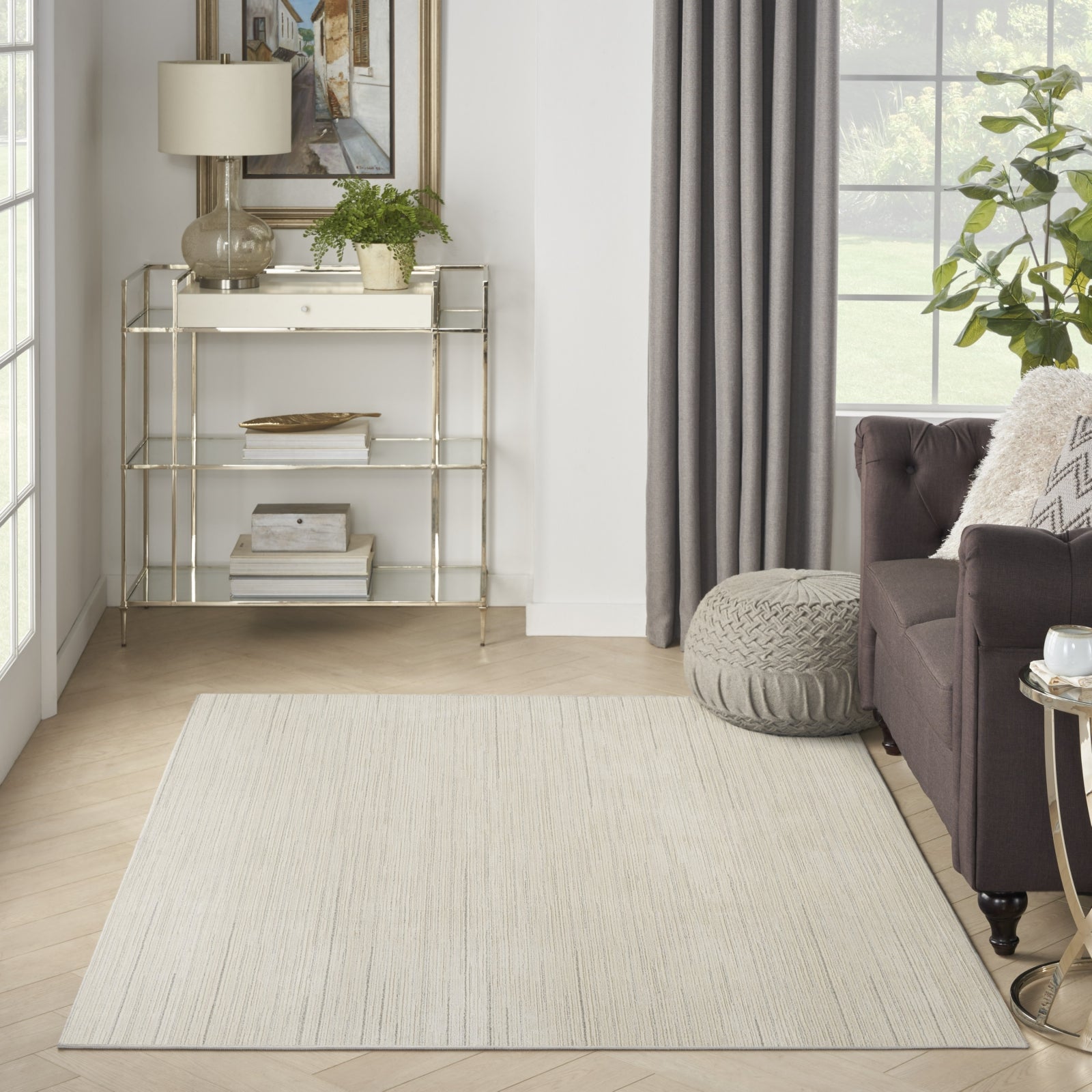 - Add a touch of sophistication to your space with this abstract rug from the Santa Cruz Collection. The simple yet stylish abstract stripe pattern, presented in ivory and grey, effortlessly complements your living room or bedroom decor. This modern rug is made from medium-thick polyester and polypropylene yarns that add plush texture and durability, with a subtle high-low pile that adds depth.