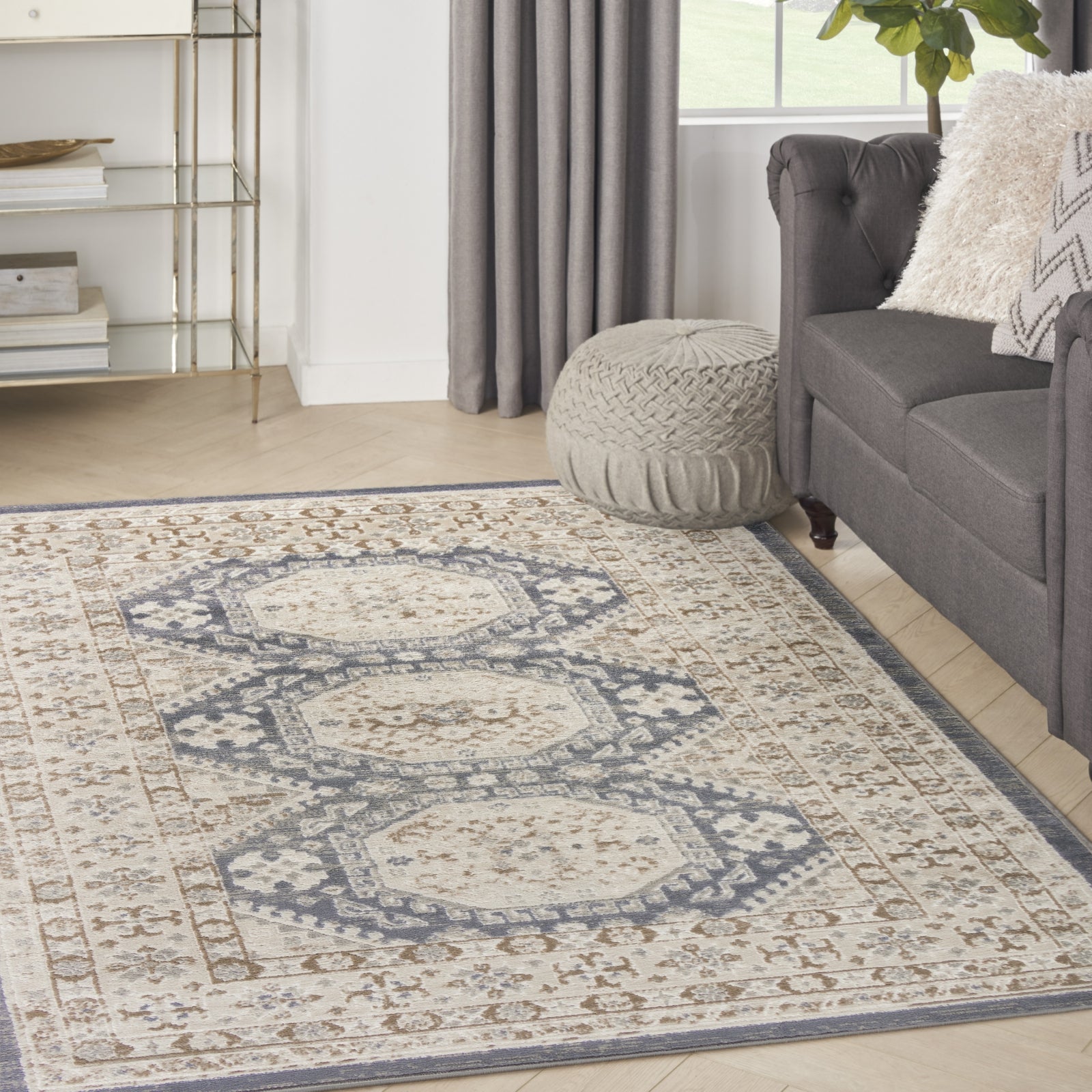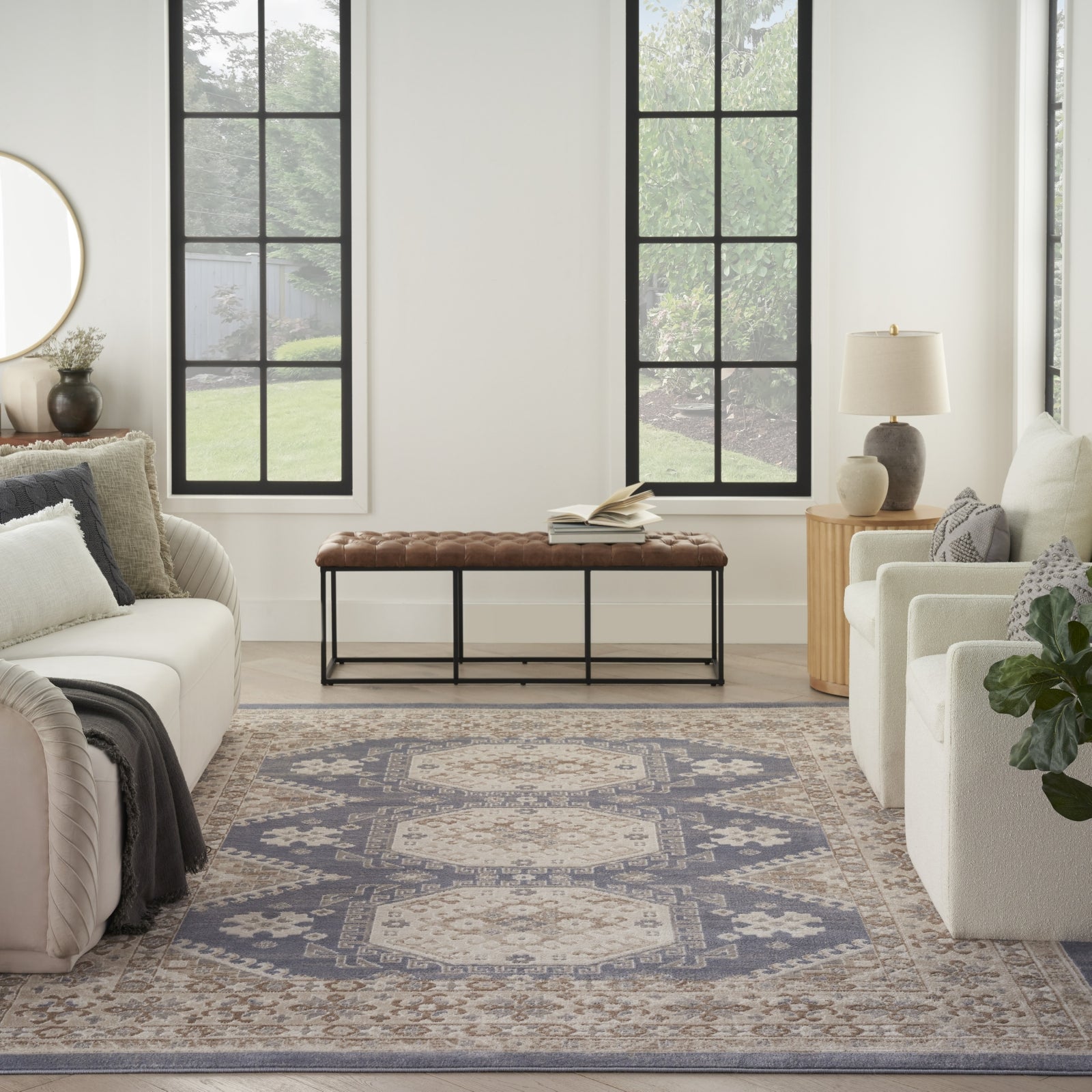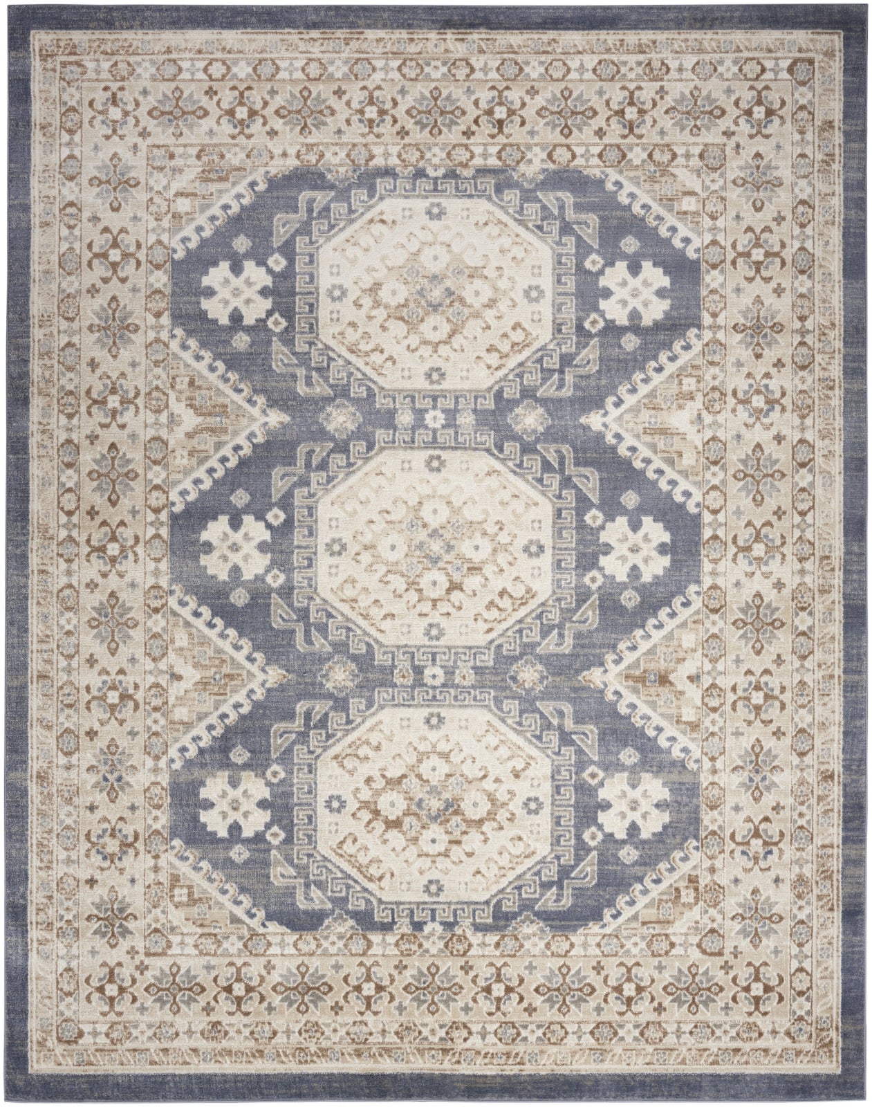 - This vintage-inspired blue rug from the Serenity Home Collection adds instant personality to your space. The traditional Persian medallion pattern is tastefully distressed, replicating a charming antique look. Machine-made for durability and easy cleaning, this family-friendly rug is finished with a high-low pile that adds texture and dimension.