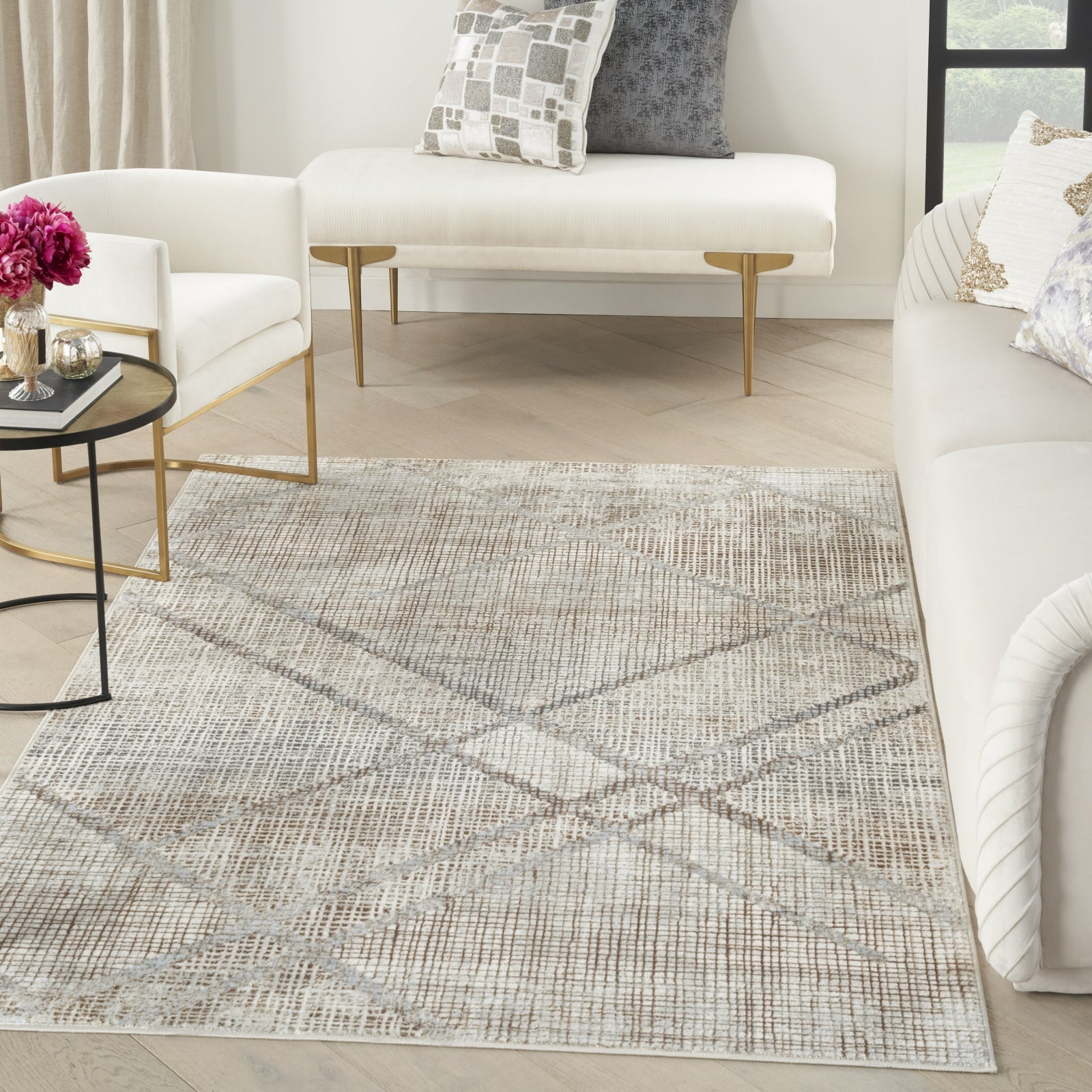 - This abstract grey rug from the Sparkle Collection features a striking cross-linear pattern that plays with texture and light. The low-pile design is made of durable, low-maintenance polyester yarns - great for placement in your living room, dining room, bedroom, or hallway. Crafted from durable, low-pile polyester, this modern design is both luxurious and livable.