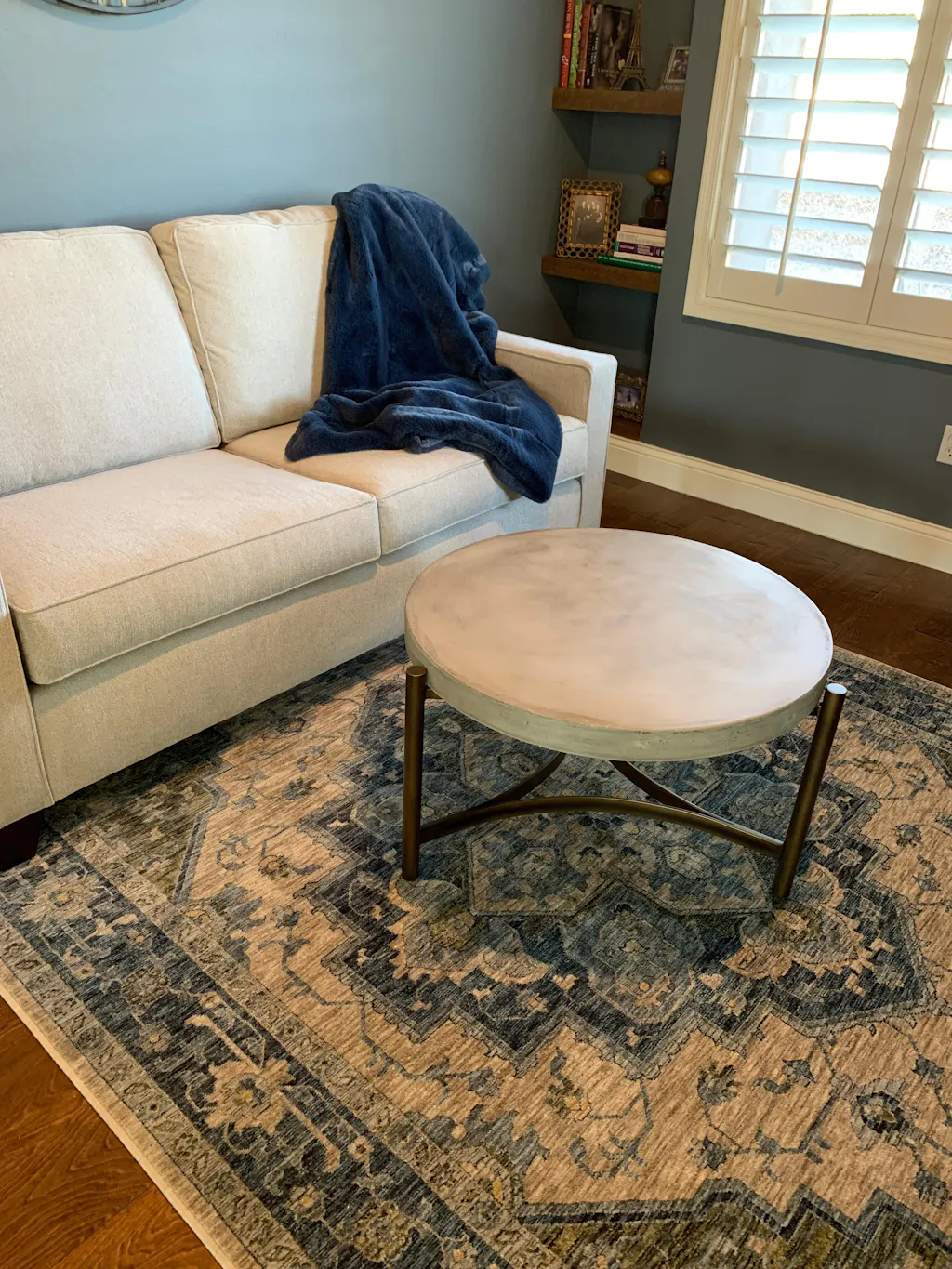 I love my new rug! I ordered it for my home office, and the colors are beautiful. More blue/navy than teal, which is what I was hoping for. It's perfect with my gray-blue wall color and navy leather desk chair. The rug also has a muted, vintage feel which I wasn't expecting but love. Service from Incredible Rugs was excellent. The rug was back ordered in November but still arrived before the holidays.
