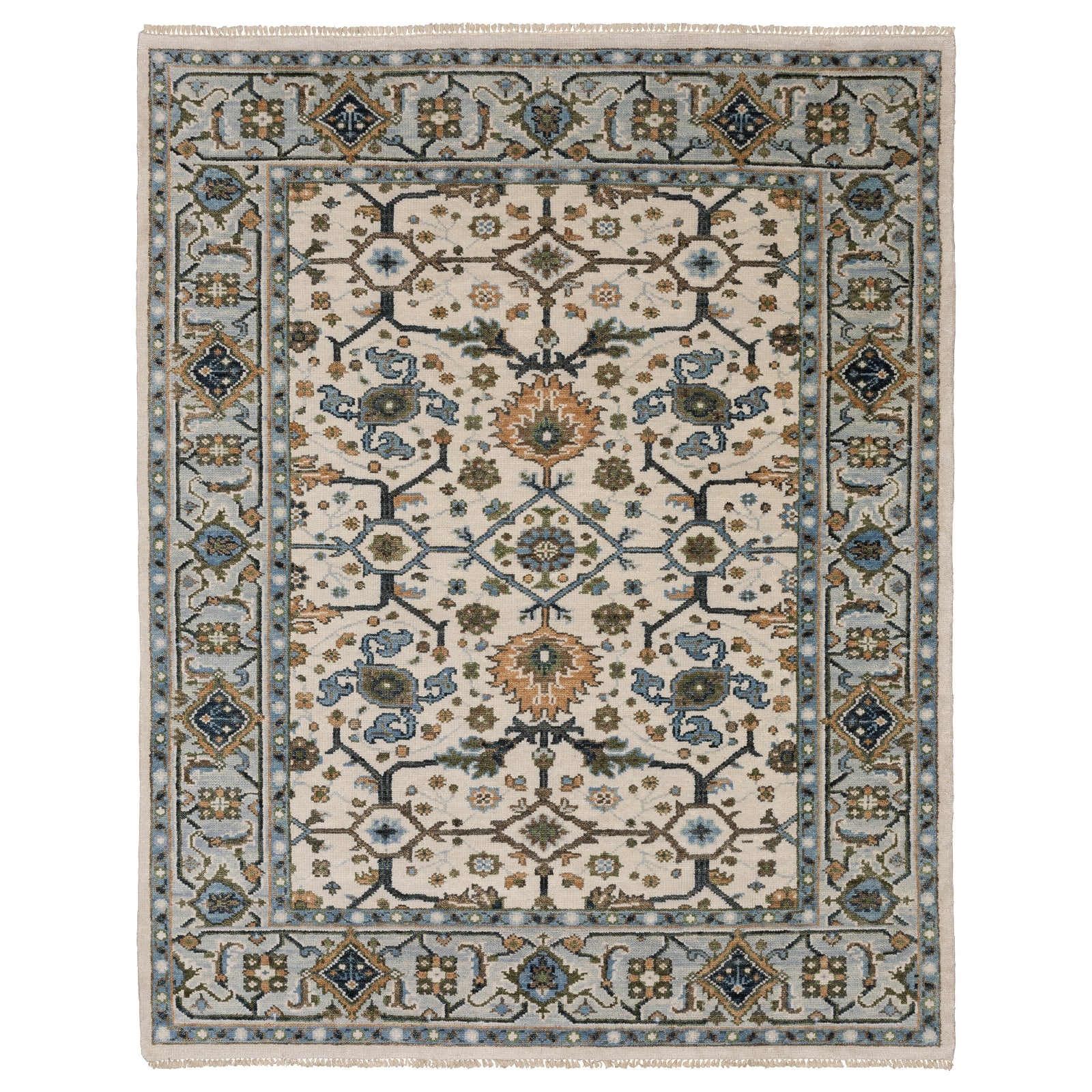 The Majorca collection features vintage-inspired, classic Oushak motifs which are transformed by trend forward colors for a more modern design aesthetic. Knotted entirely by hand of premium hand spun wool, these gorgeous, heirloom-quality pieces feature unique color and design variations for one-of-a- kind appeal.