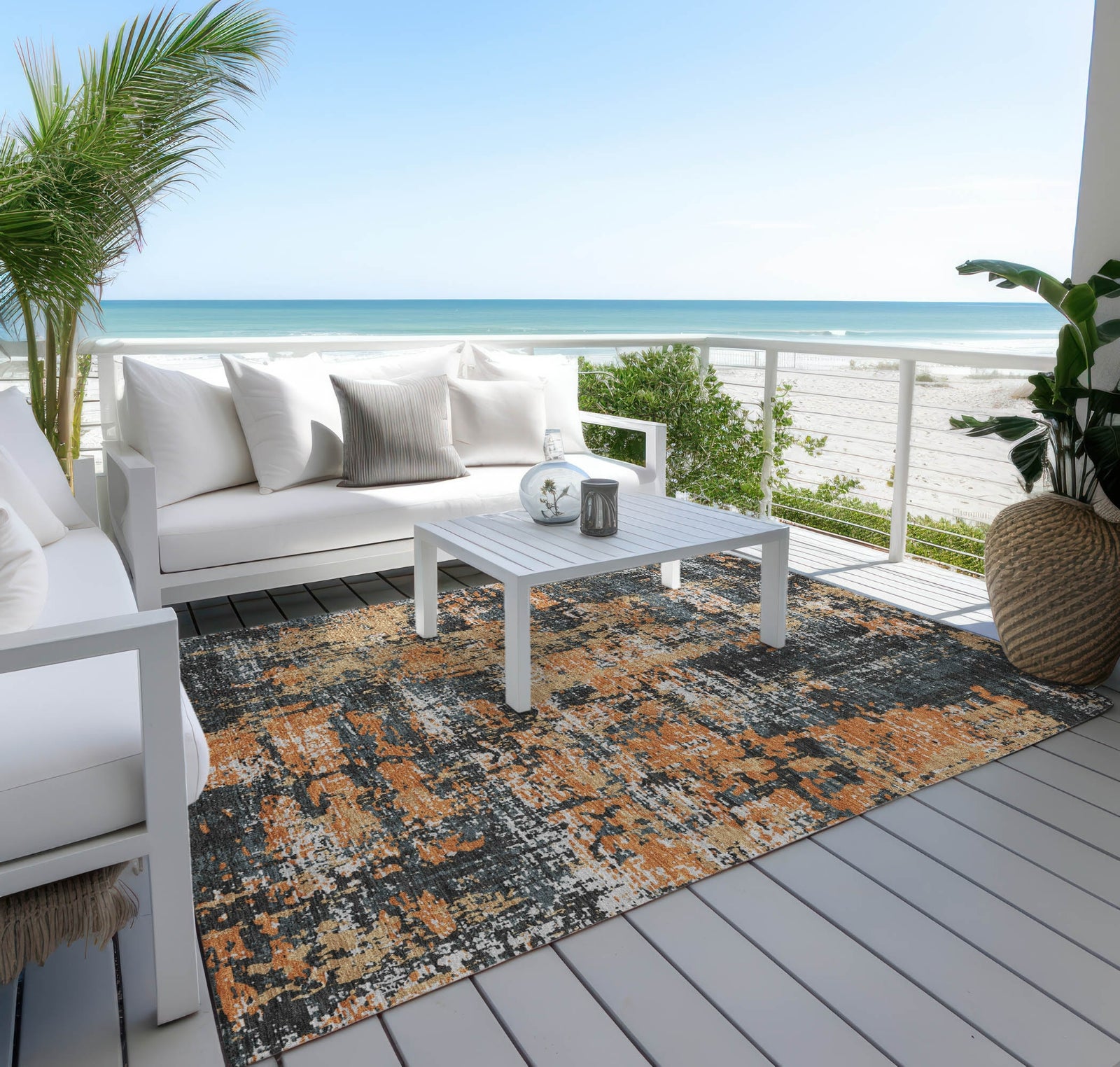 Let our area rug, with its brush stroke-like design, bring an artistic and abstract dimension to your home decor. This transitional piece melds beautifully with different styles, enhancing your space with its unique aesthetic. Its UV stabilized, ultra-thin construction ensures it fits perfectly in both indoor and outdoor areas, and being machine-washable makes it a must-have for homes with pets and kids.
