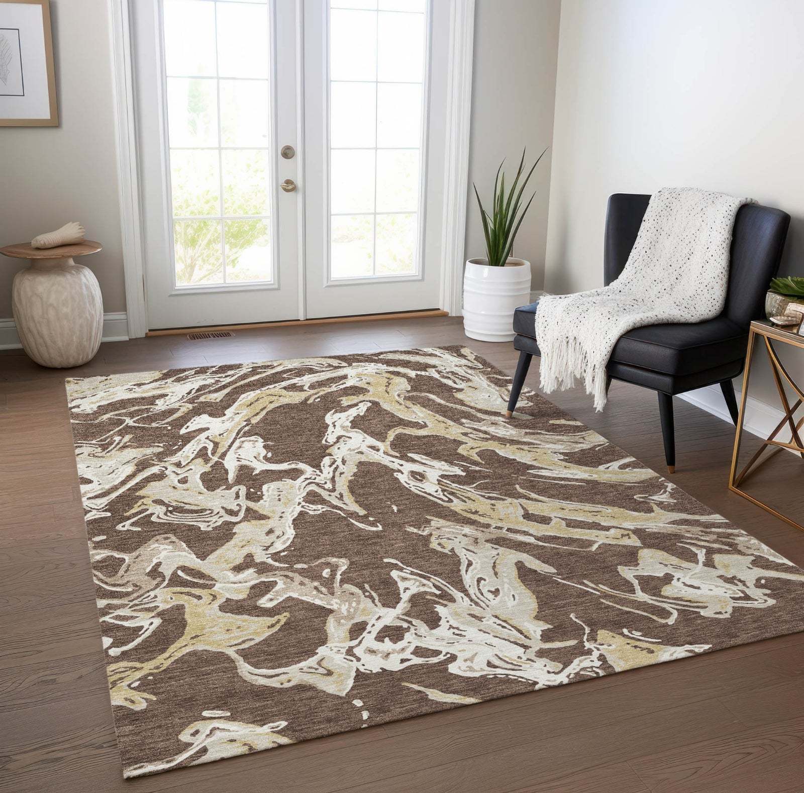 Piper Looms Chantille Abstract ACN1035 Brown Machine Washable Area Rug