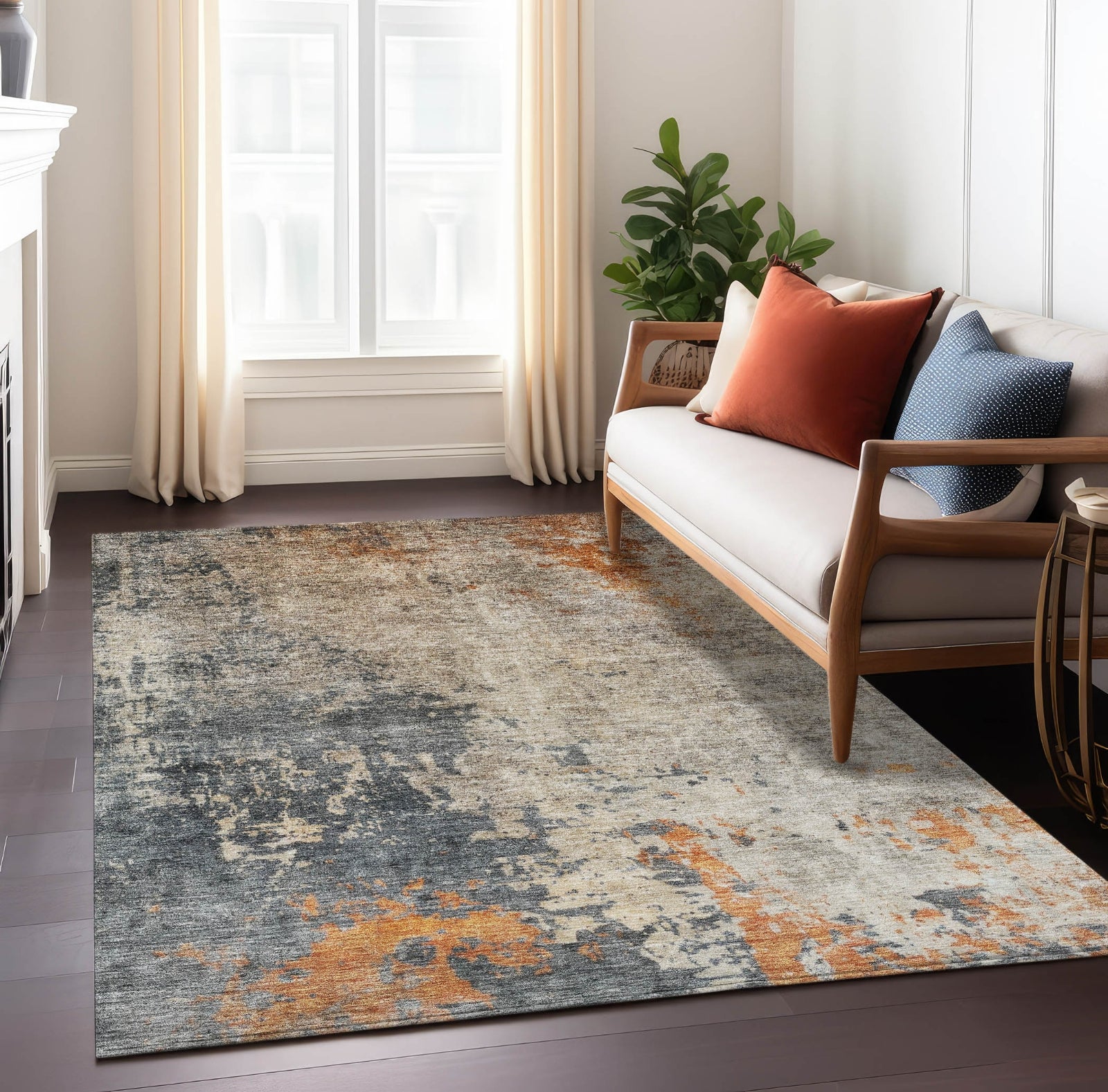 Our area rug, adorned with a modern textured design, brings a refined touch to abstract and transitional decor. UV stabilized for durability in any environment, it boasts ultra-thin construction for easy placement. Additionally, it's machine-washable, making it an excellent choice for busy households with pets and children.