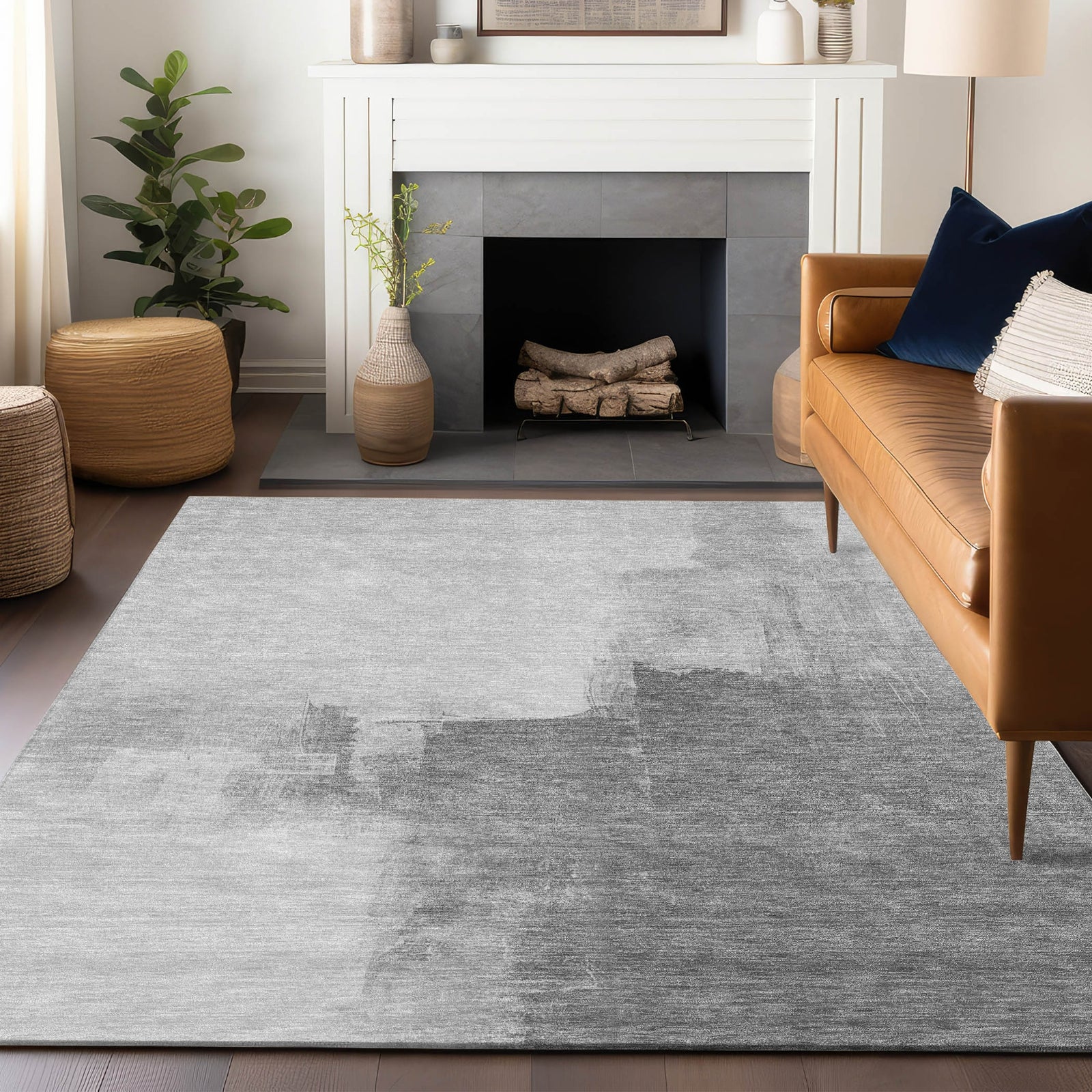 Piper Looms Chantille Abstract ACN1337 Silver Machine Washable Area Rug