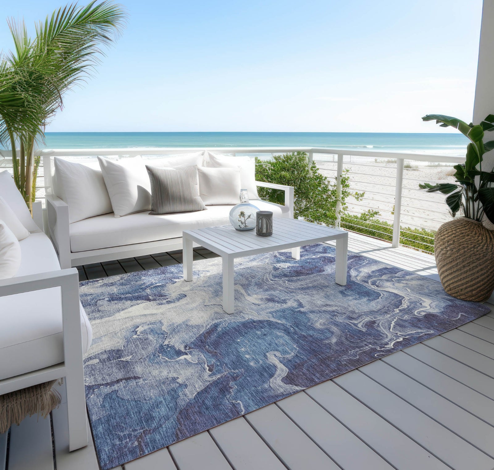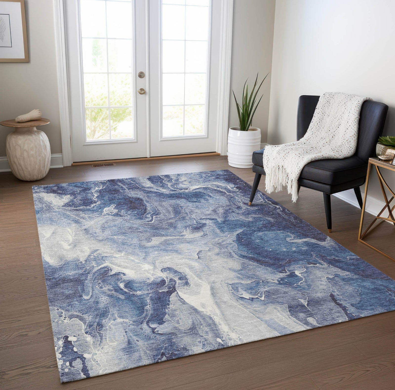 Piper Looms Chantille Abstract ACN1687 Blue Machine Washable Area Rug