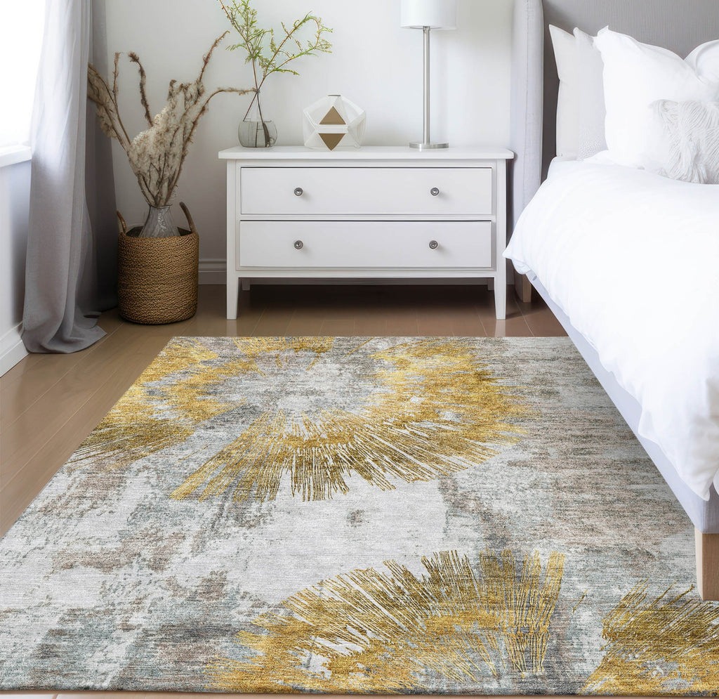 Piper Looms Chantille Abstract ACN773 Gold Machine Washable Area Rug