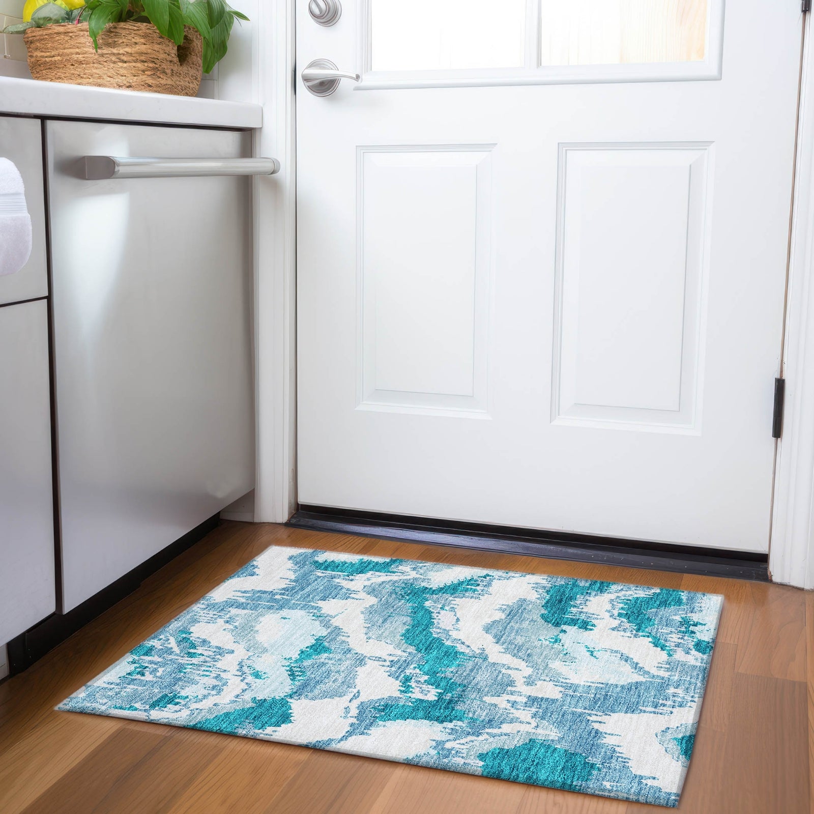 Piper Looms Chantille Abstract ACN865 Teal Machine Washable Area Rug