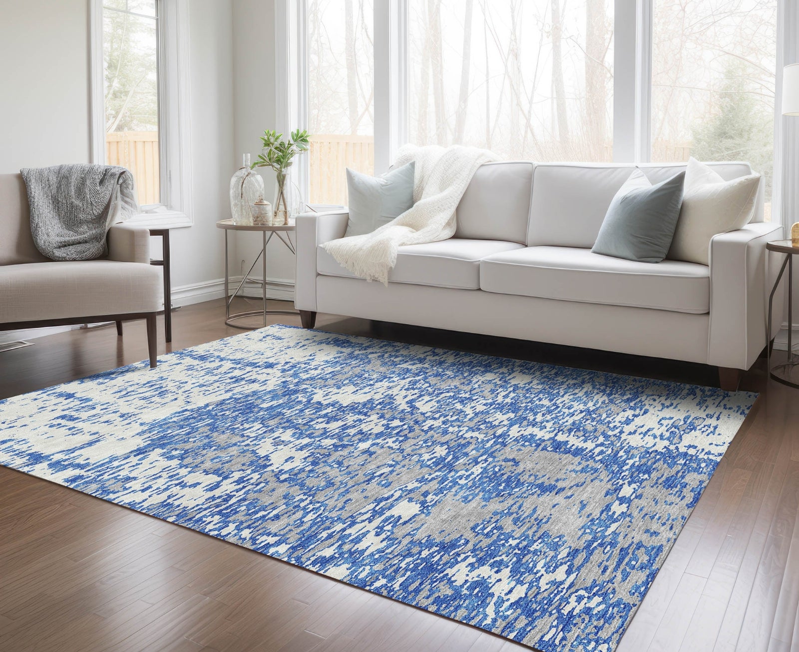 Piper Looms Chantille Abstract ACN946 Blue Machine Washable Area Rug