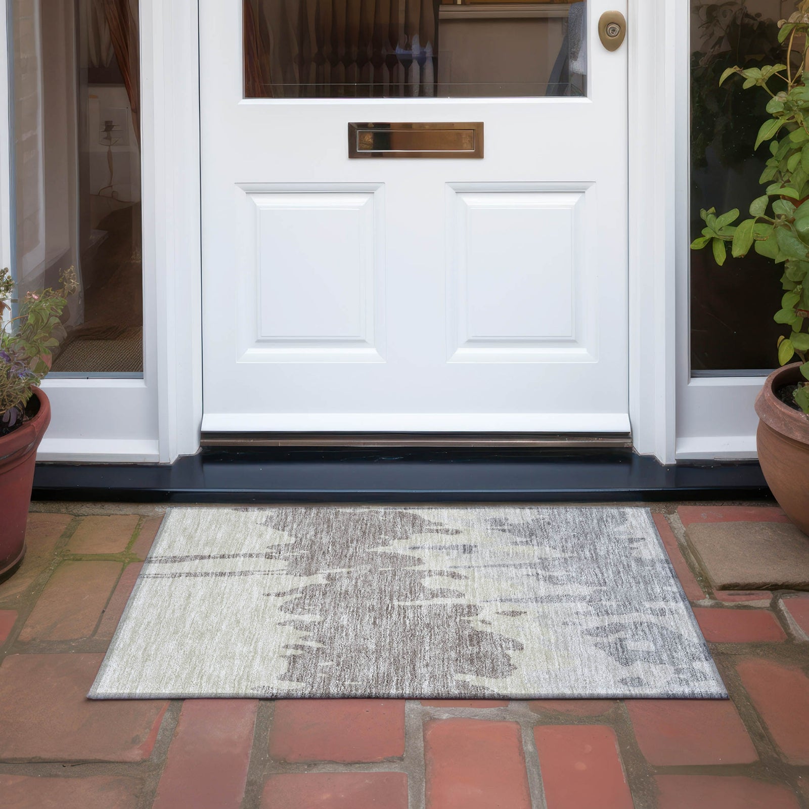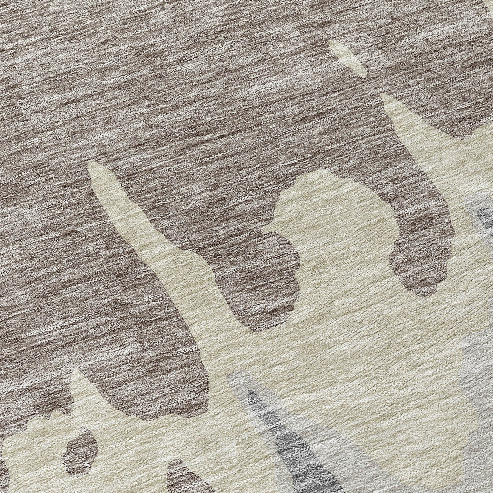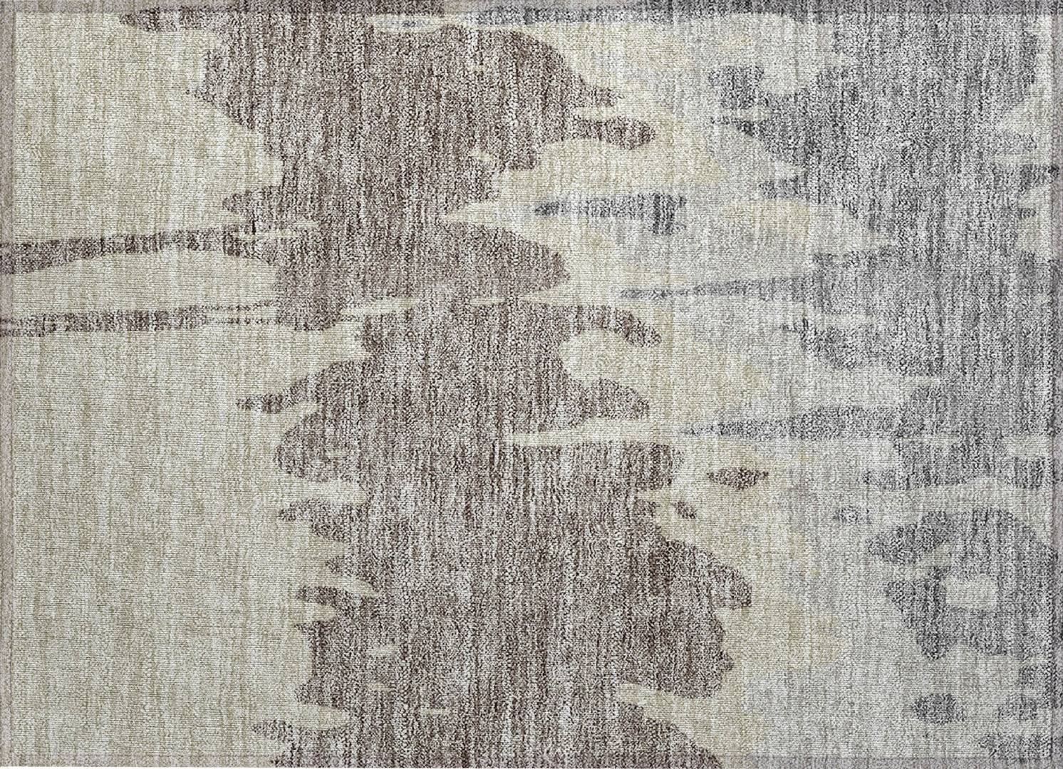Adorn your floors with our area rug, where large irregular patterns spread across in a horizontal display, exuding an abstract yet transitional charm. This rug is a functional work of art with UV stabilization, an ultra-thin silhouette for modern interiors, and machine-washable ease for those with children and pets.