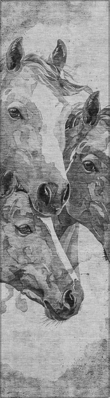 With three horse heads rendered in a distressed pattern, this rug brings a touch of transitional elegance to any interior. The intricate, aged design of the horses enhances the rug's visual appeal, fitting seamlessly with contemporary styles. Its durable construction and low-maintenance qualities ensure lasting beauty and practicality.