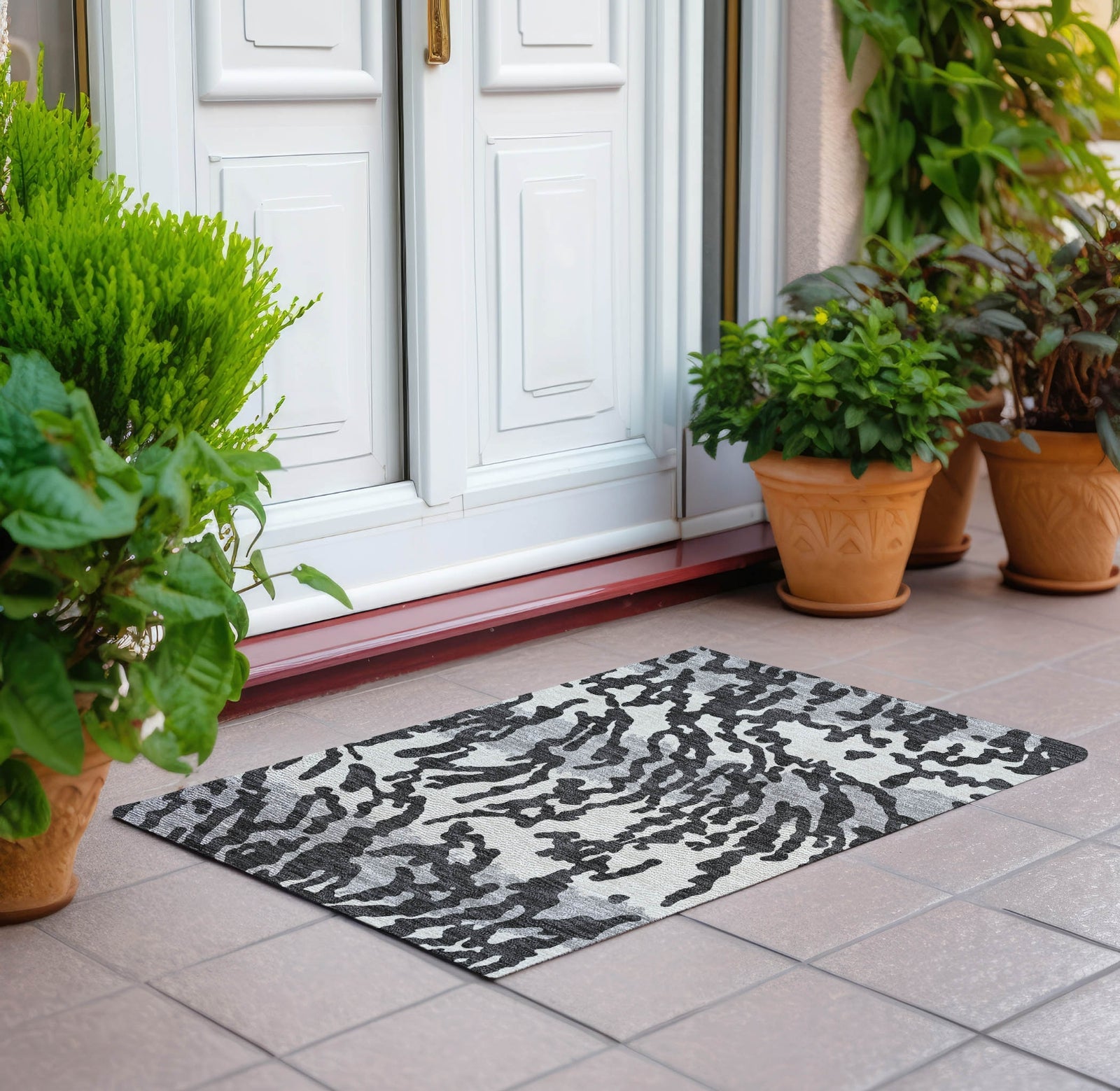 Piper Looms Chantille Animal Print ACN873 Black Machine Washable Area Rug