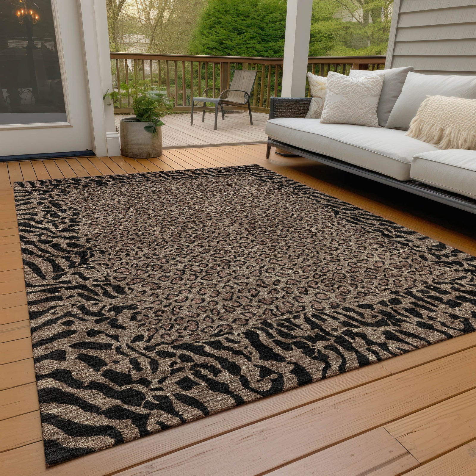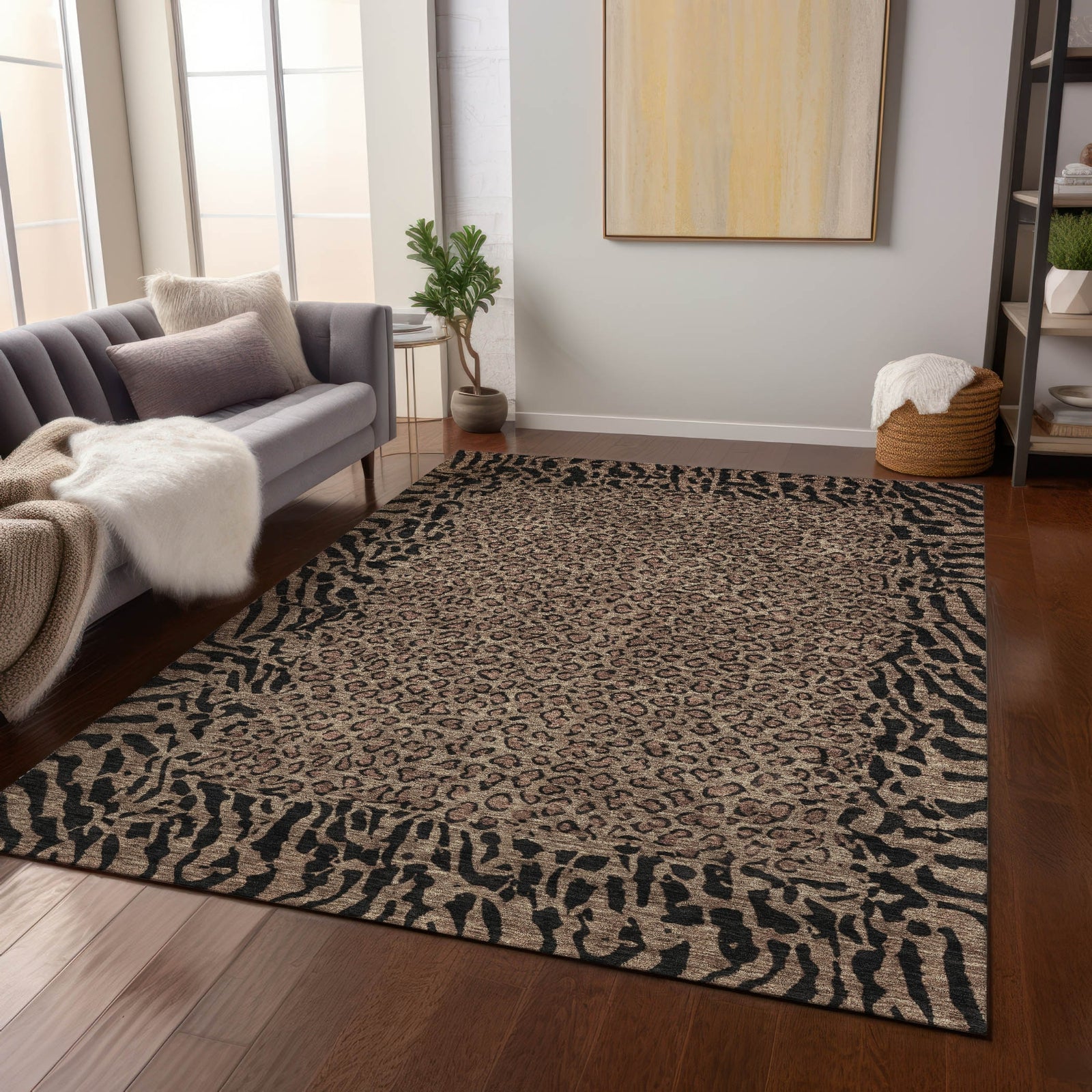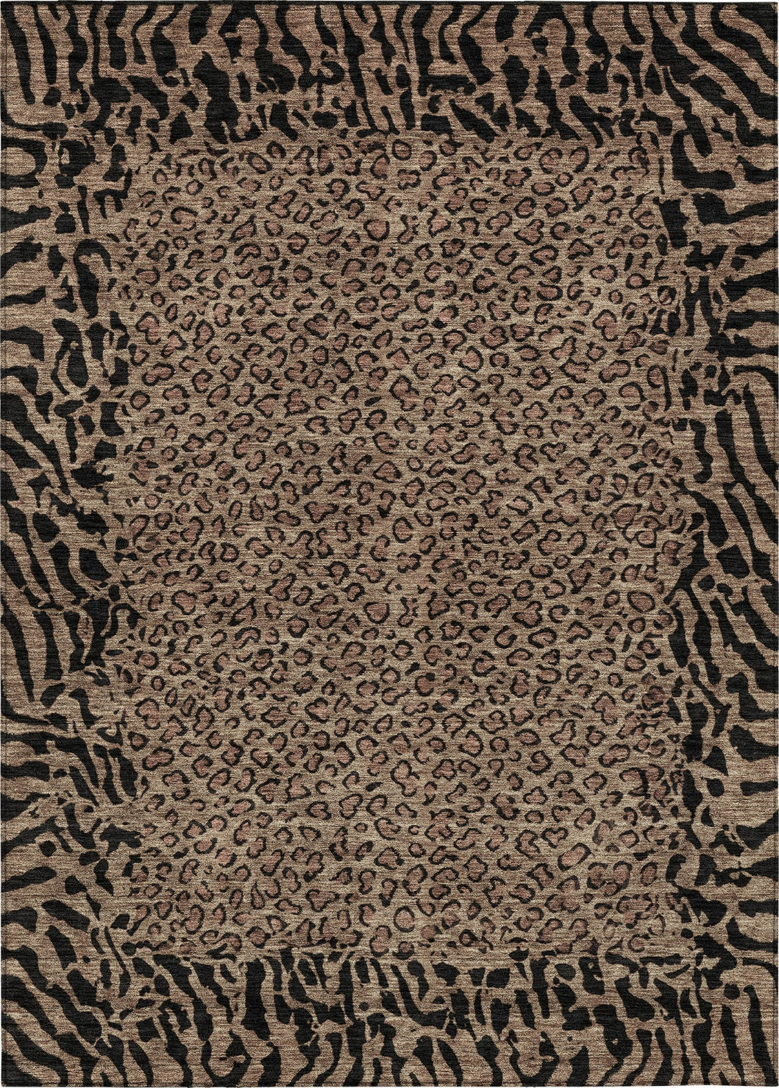 Featuring a zebra border and modern cheetah print field, this area rug adds a bold and exotic flair to transitional interiors. The animal skin pattern enhances its wild and stylish appeal. UV stabilized for use indoors or out, the ultra-thin construction makes upkeep simple. Machine-washable and family and pet-friendly, it's built for everyday style and ease.