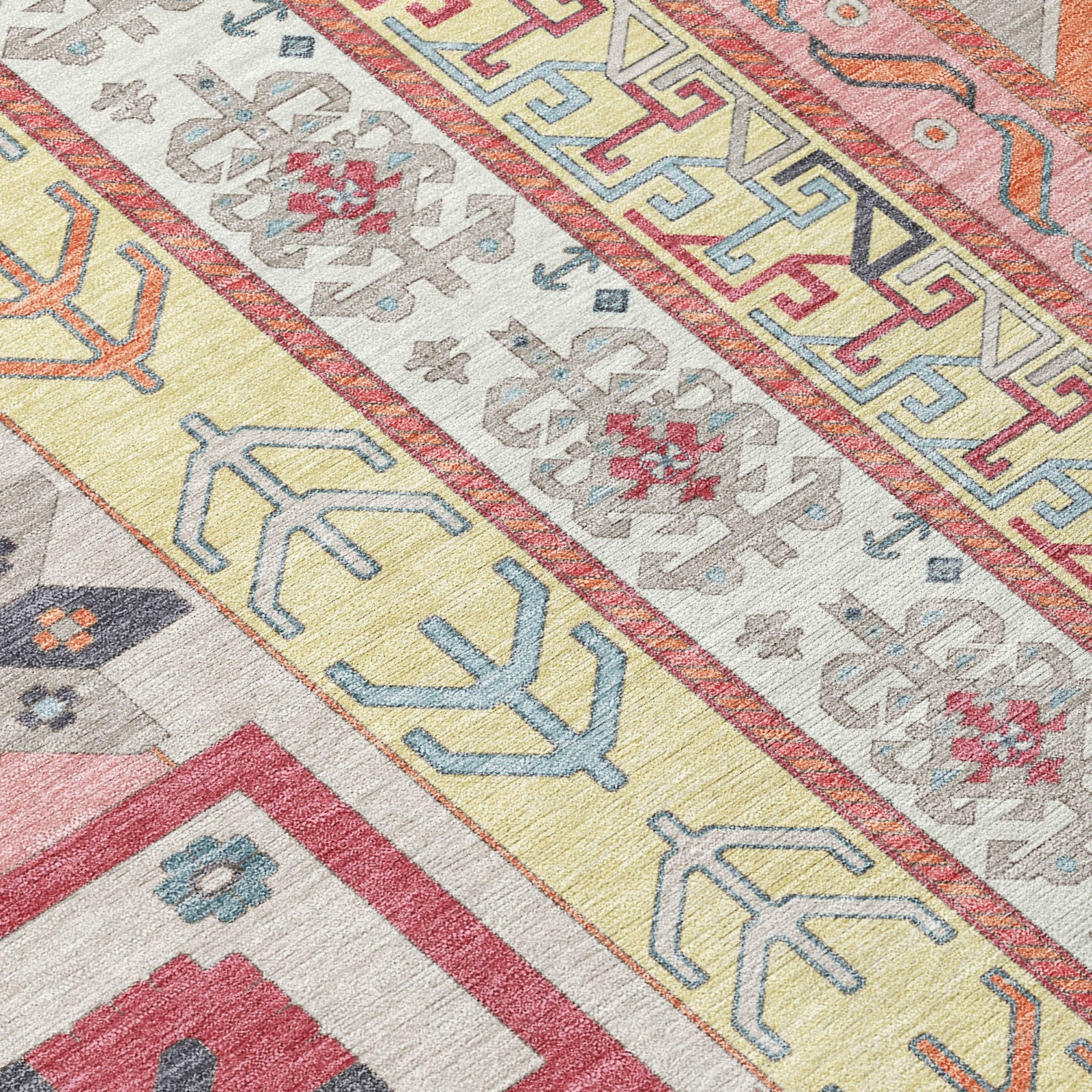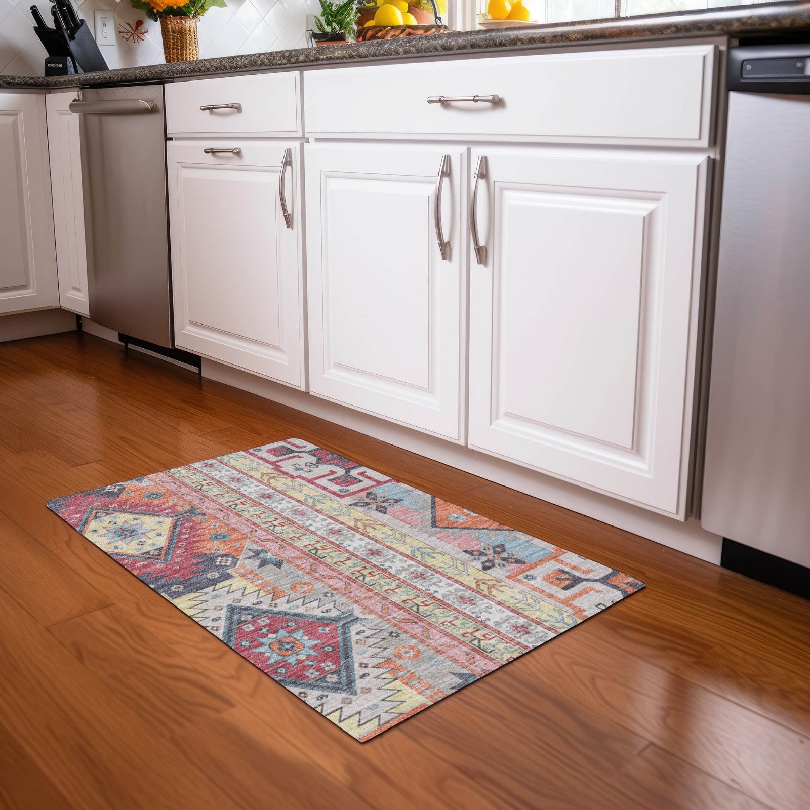 Our Aztec-inspired area rug, with its delightful boho flair and transitional design, will instantly enhance the look of your living space. This rug is not only a decorative piece but also built to last, UV stabilized to protect against sun damage whether used indoors or outdoors. The ultra-thin construction ensures it fits easily anywhere in your home, and it's machine-washable for easy care. Plus, it's designed to be both family and pet friendly, making it a practical choice for any household.
