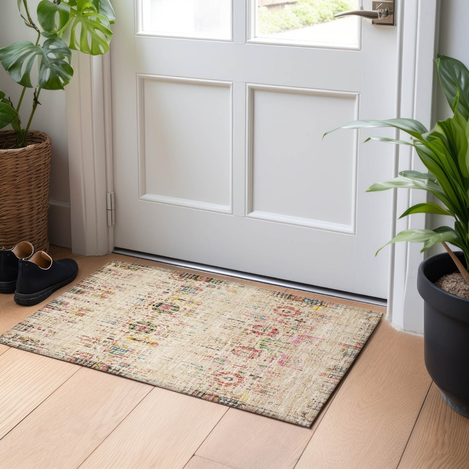 Piper Looms Chantille Border ACN1734 Beige Machine Washable Area Rug