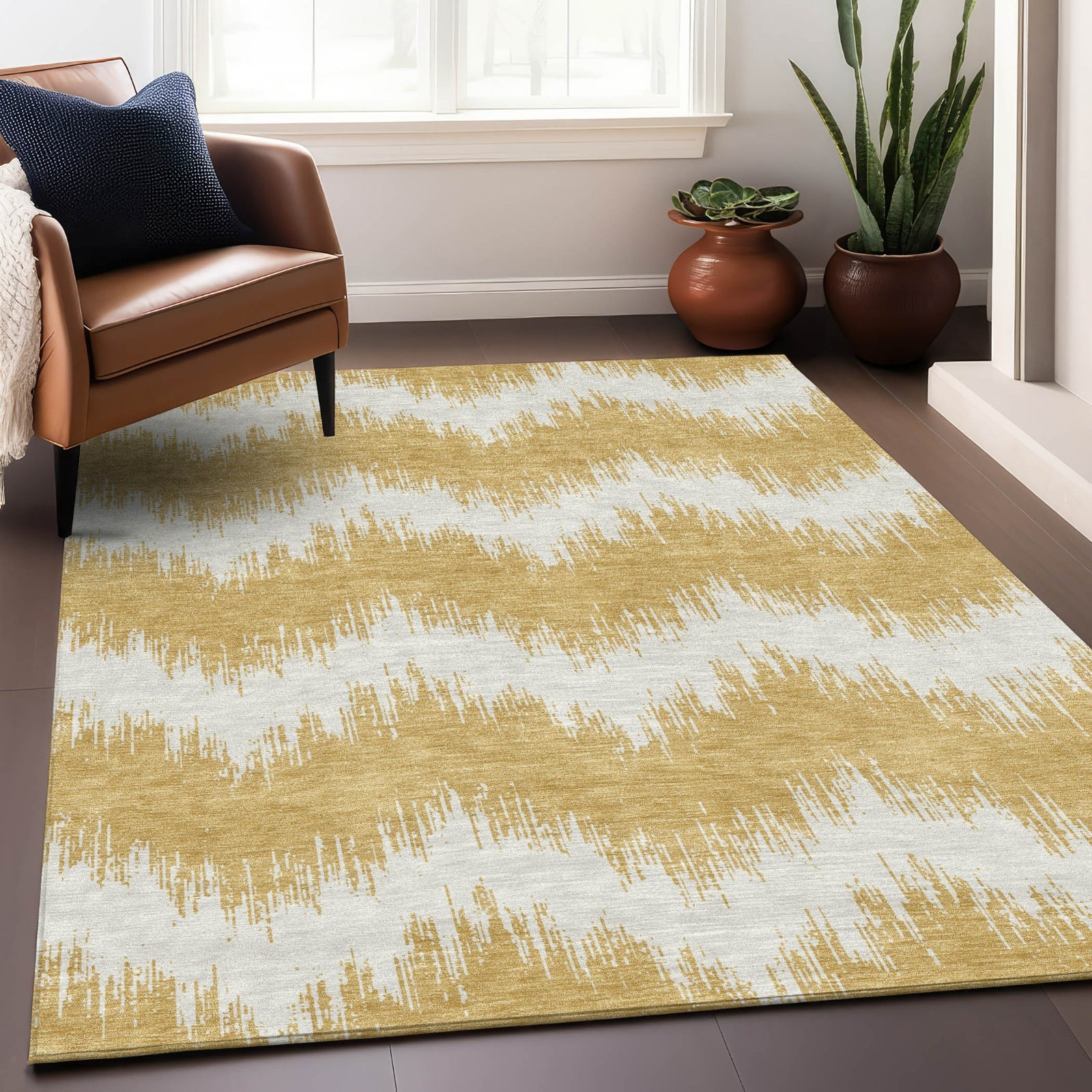 Piper Looms Chantille Chevron ACN880 Gold Machine Washable Area Rug