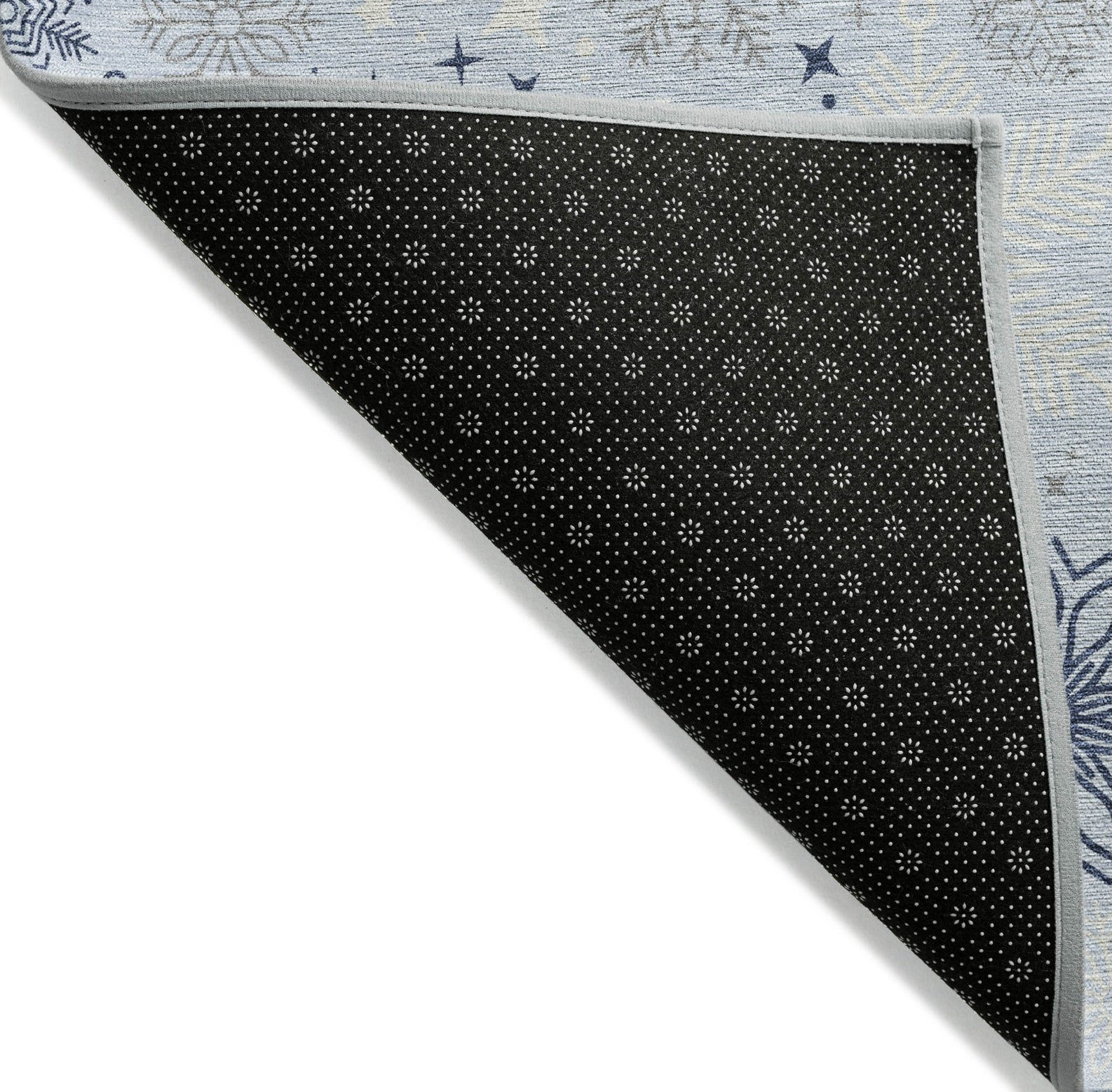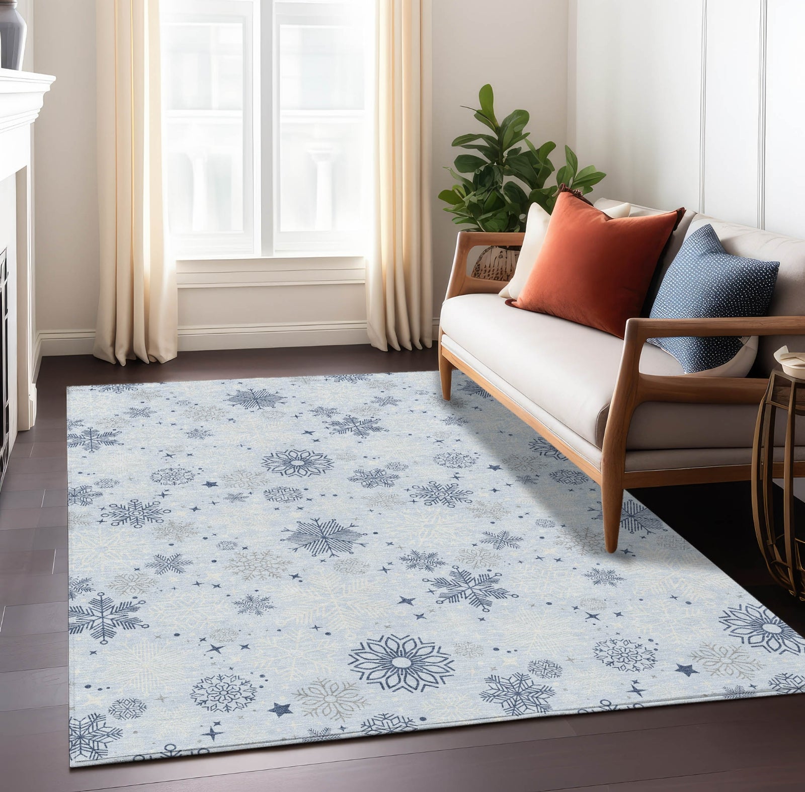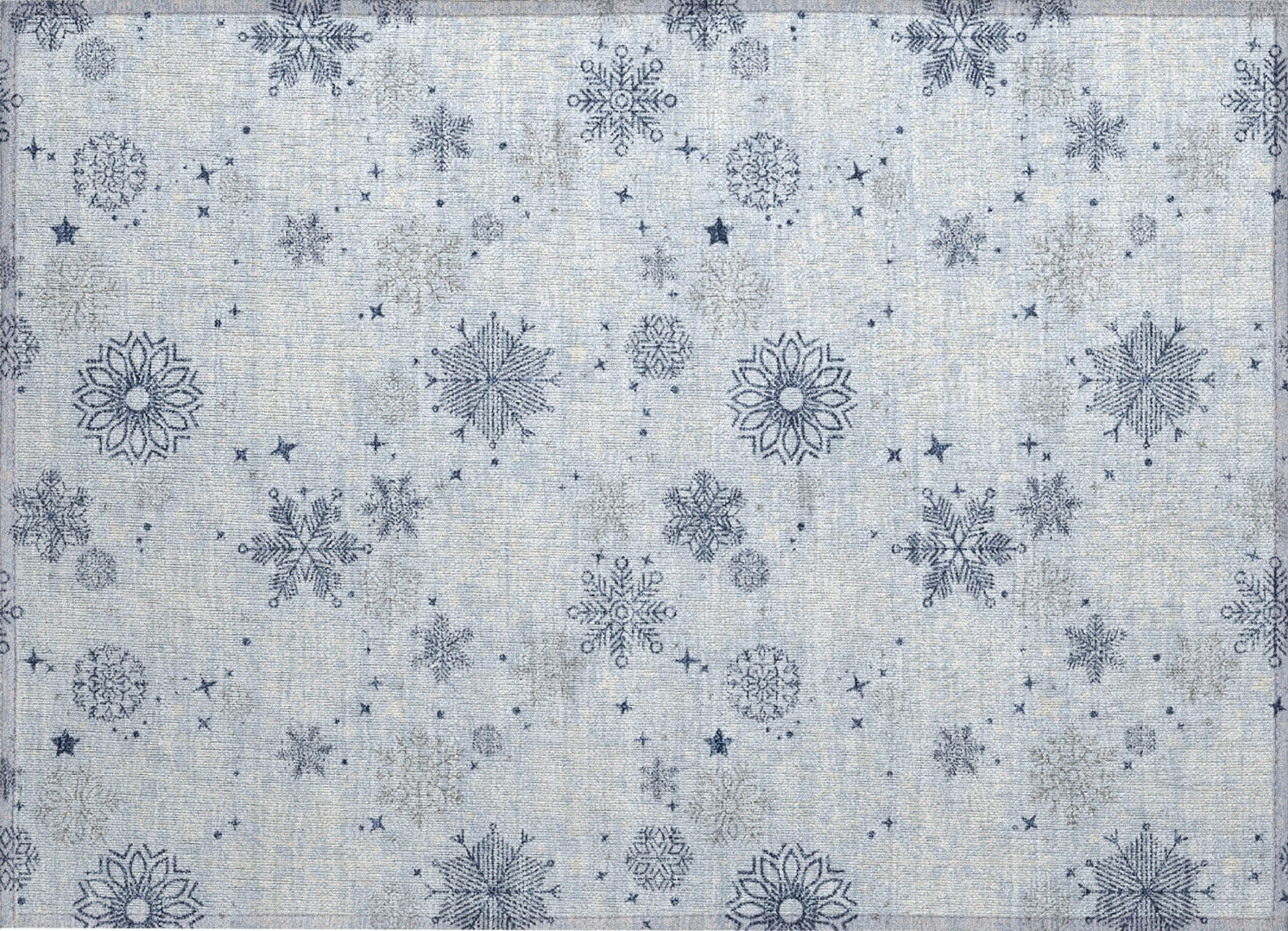 The playful mix of snowflakes on this rug offers a festive and charming winter design. The different styles of snowflakes bring an interesting visual dynamic, while the transitional style allows the rug to blend effortlessly into both classic and contemporary interiors. This UV-stabilized rug is designed for both indoor and outdoor use, with an ultra-thin construction that makes it easy to manage and maintain. Machine-washable for convenience, it's also family and pet-friendly, ensuring it holds up to daily traffic and activity. Bring effortless style and durability to your space with this versatile rug.