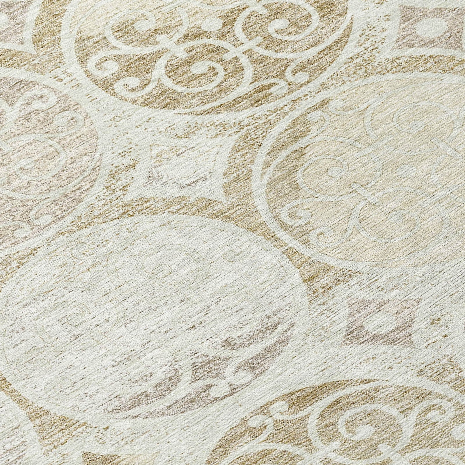 Indulge in the grandeur of our rug, featuring ornate circles that mirror the complexity of wrought iron designs. This transitional piece with its circular patterns is a testament to sophisticated decor, offering a unique and upscale touch to your home. It's UV stabilized for diverse environments, ultra-thin for modern aesthetics, machine-washable for your convenience, and family and pet-friendly, making it a must-have for any stylish abode.