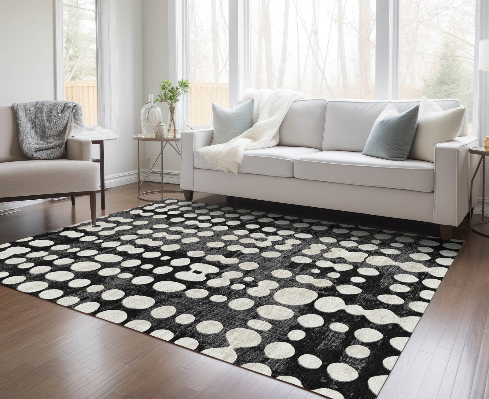 Piper Looms Chantille Circles ACN869 Black Machine Washable Area Rug