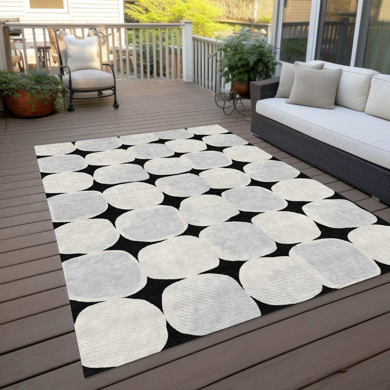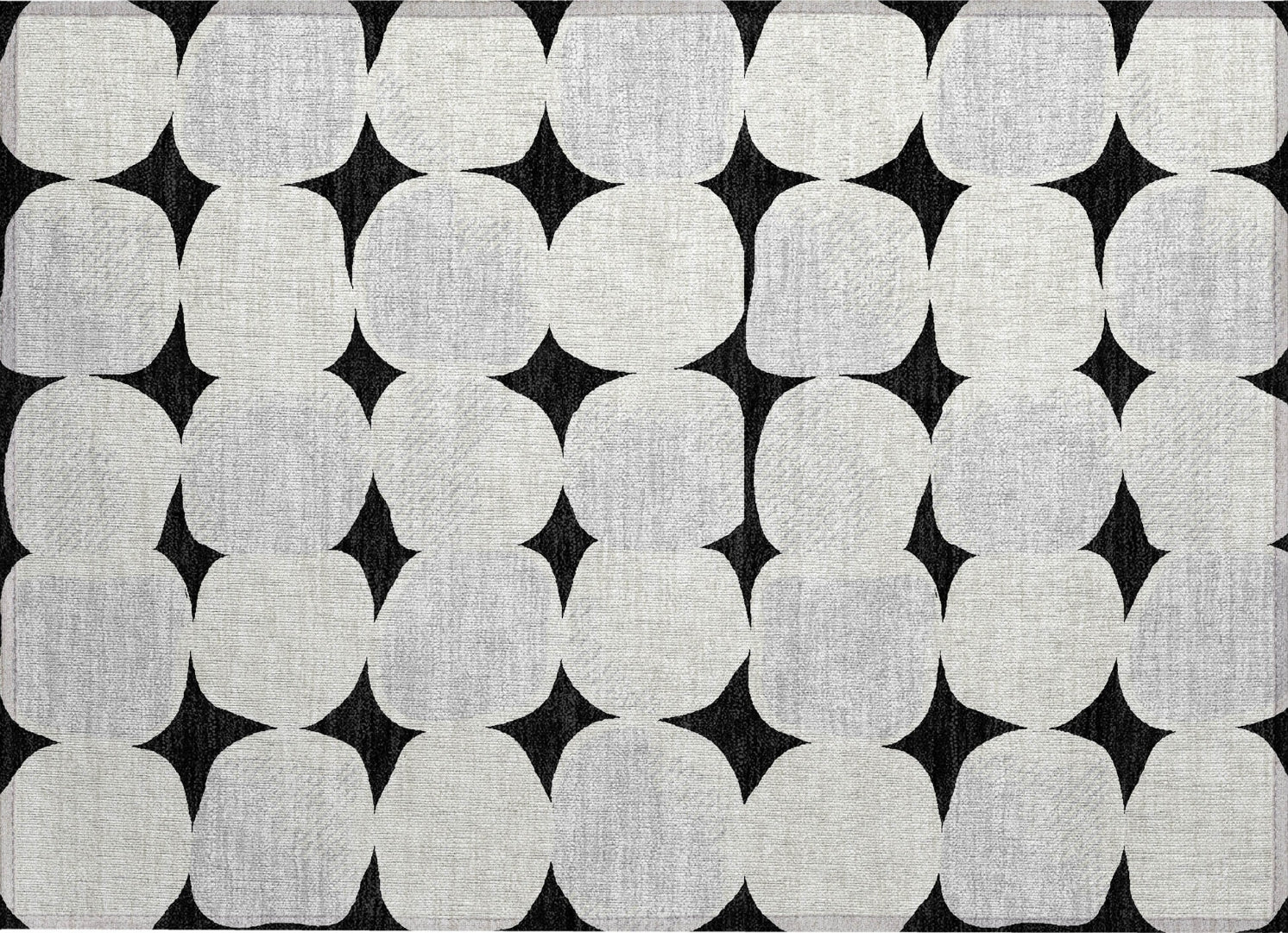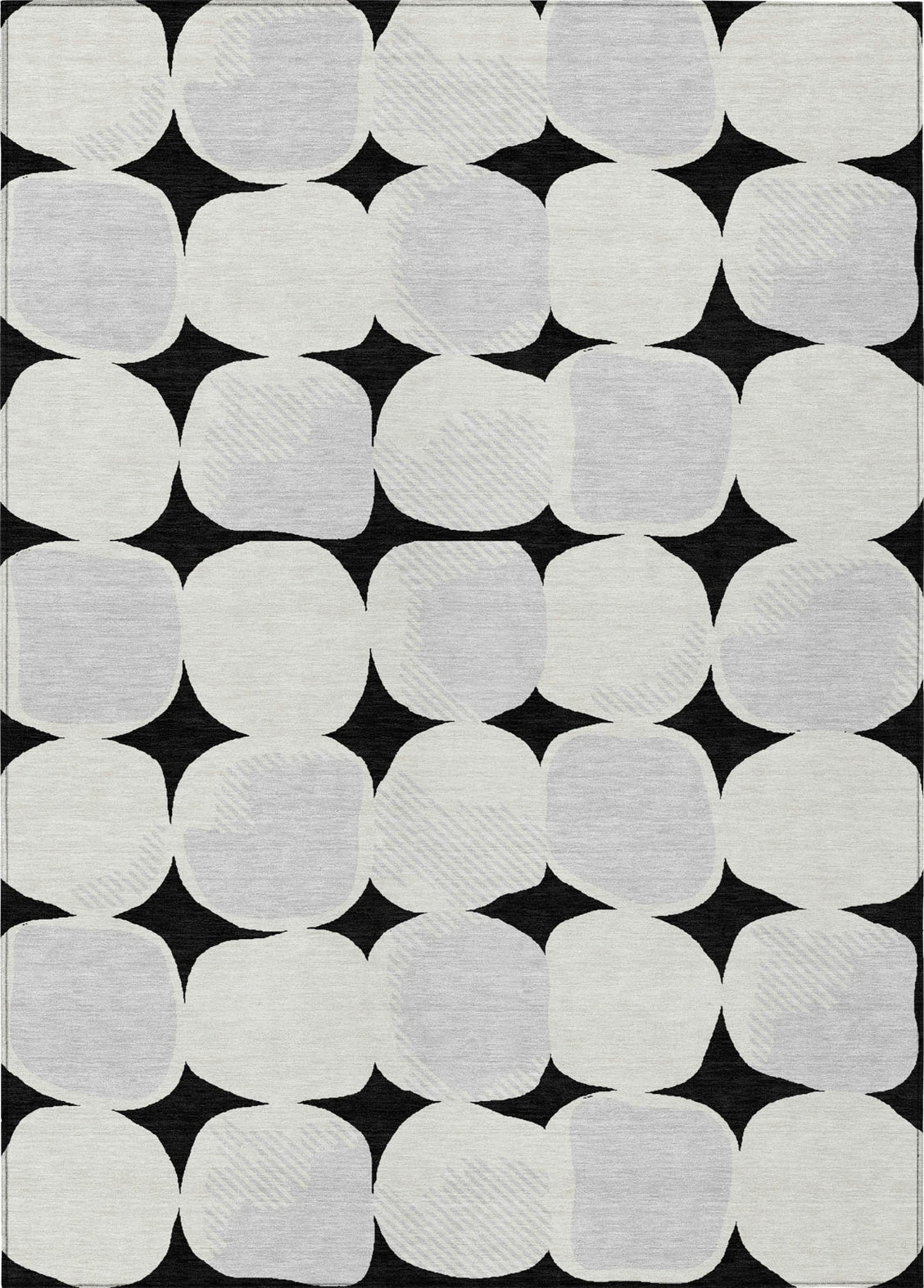 Create a calming oasis in your home with this area rug, adorned with large stone-shaped circles in a uniform pattern, embodying a transitional style that's both elegant and understated. The circles add a refined and peaceful touch to your decor. Beyond its visual appeal, this rug is UV stabilized for versatile placement, ultra-thin for seamless fitting, machine-washable for effortless maintenance, and family and pet-friendly, making it an excellent choice for contemporary living.