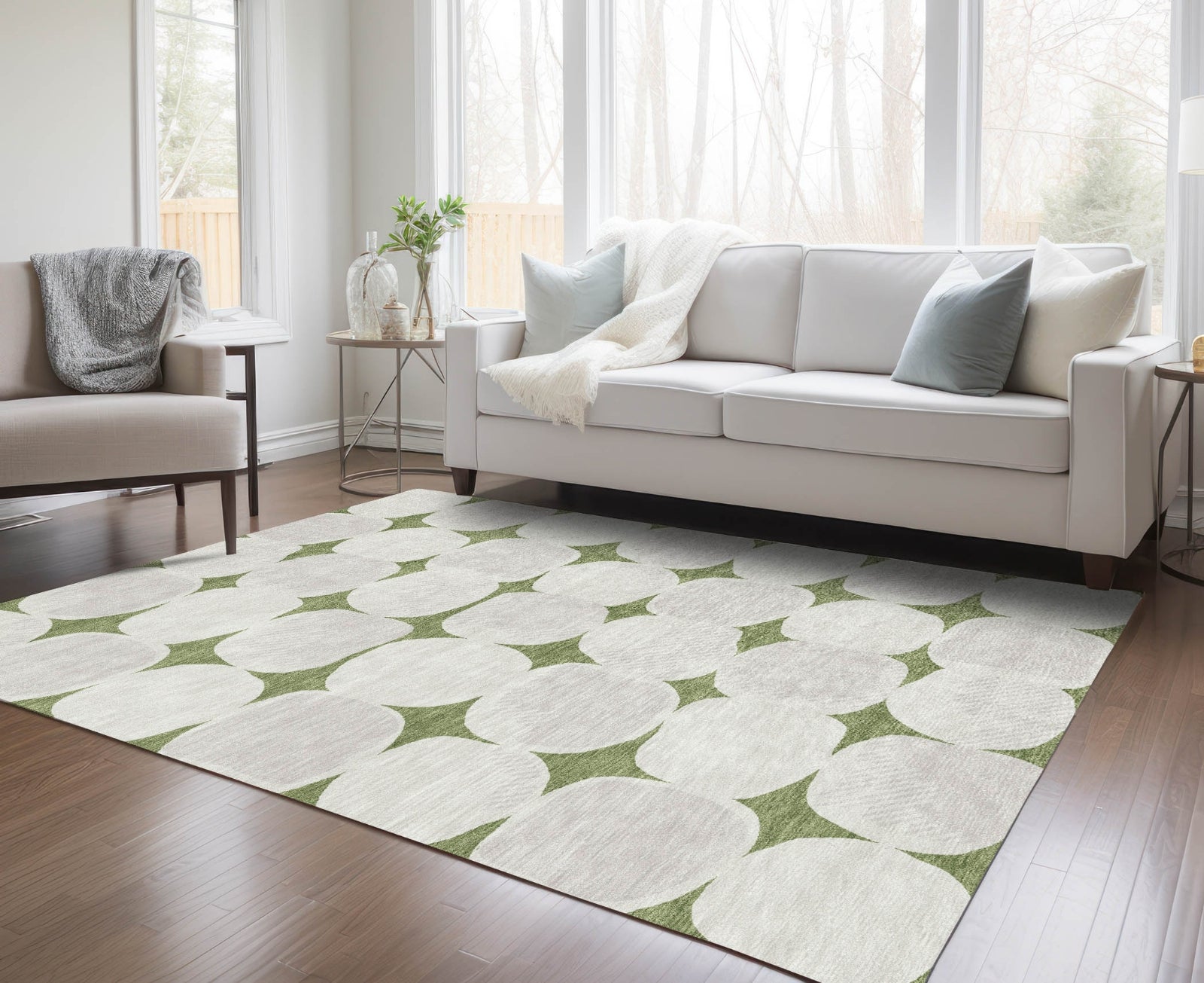 Piper Looms Chantille Circles ACN870 Green Machine Washable Area Rug
