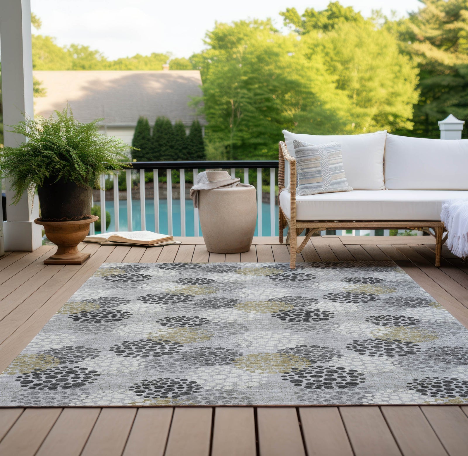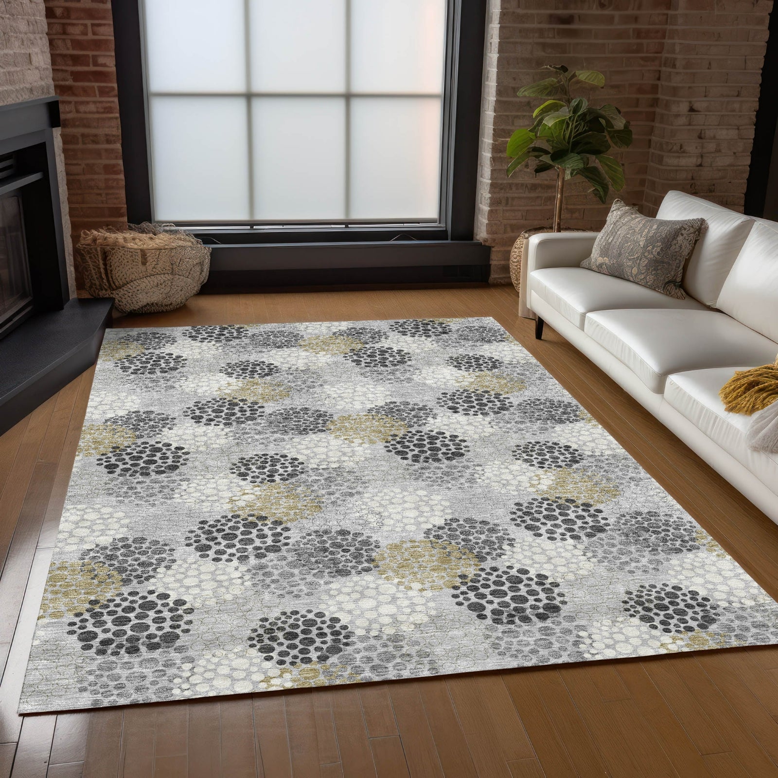 Experience the fusion of art and functionality with our area rug, featuring an exquisite pattern of small circles comprised of smaller circles, for a sophisticated modern look. This transitional rug's circular design adds a unique flair to any space. It's UV stabilized for versatility in placement, ultra-thin for easy adaptation, and machine-washable for hassle-free upkeep. Perfect for households with pets and children, it offers both elegant design and practical resilience.